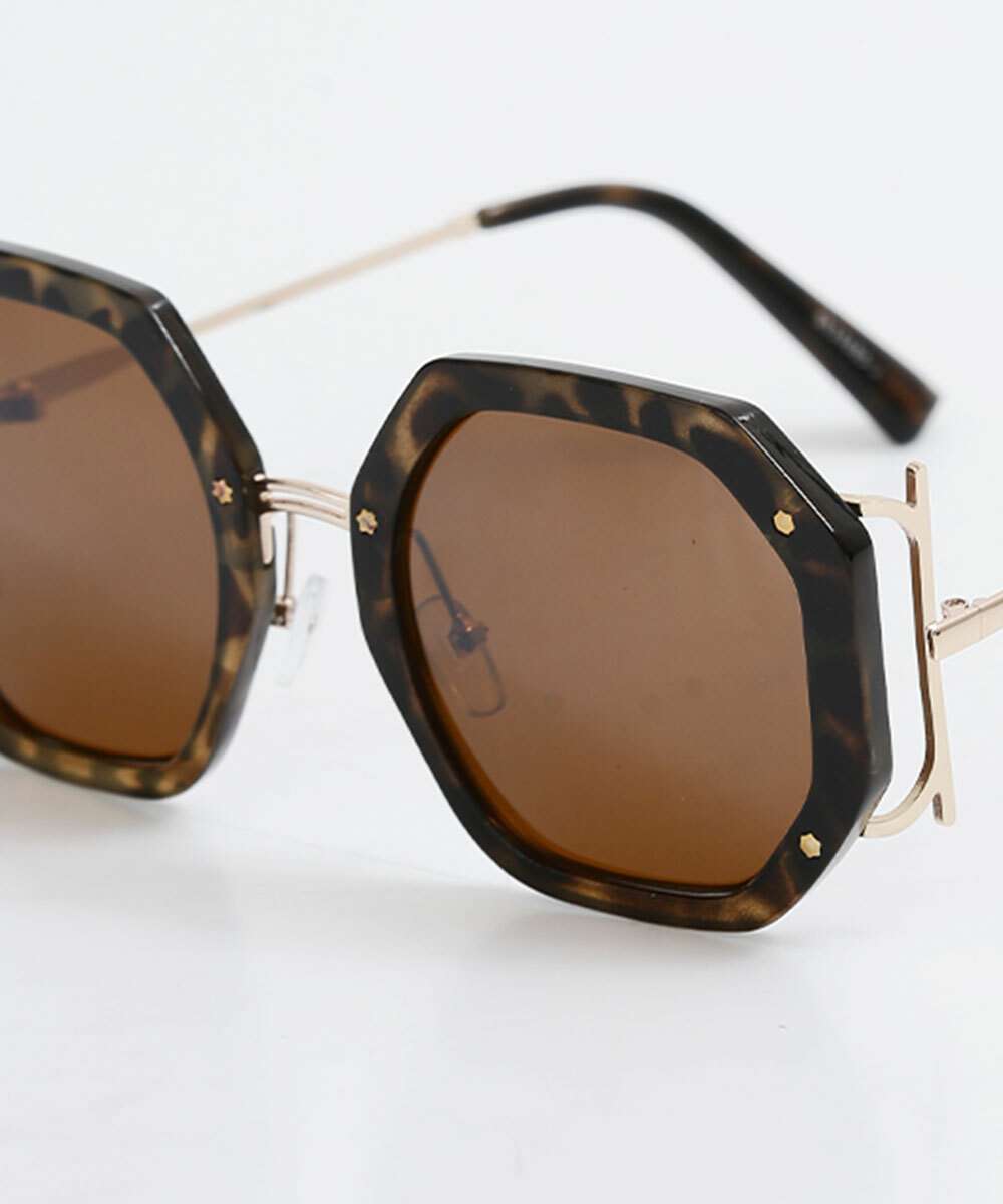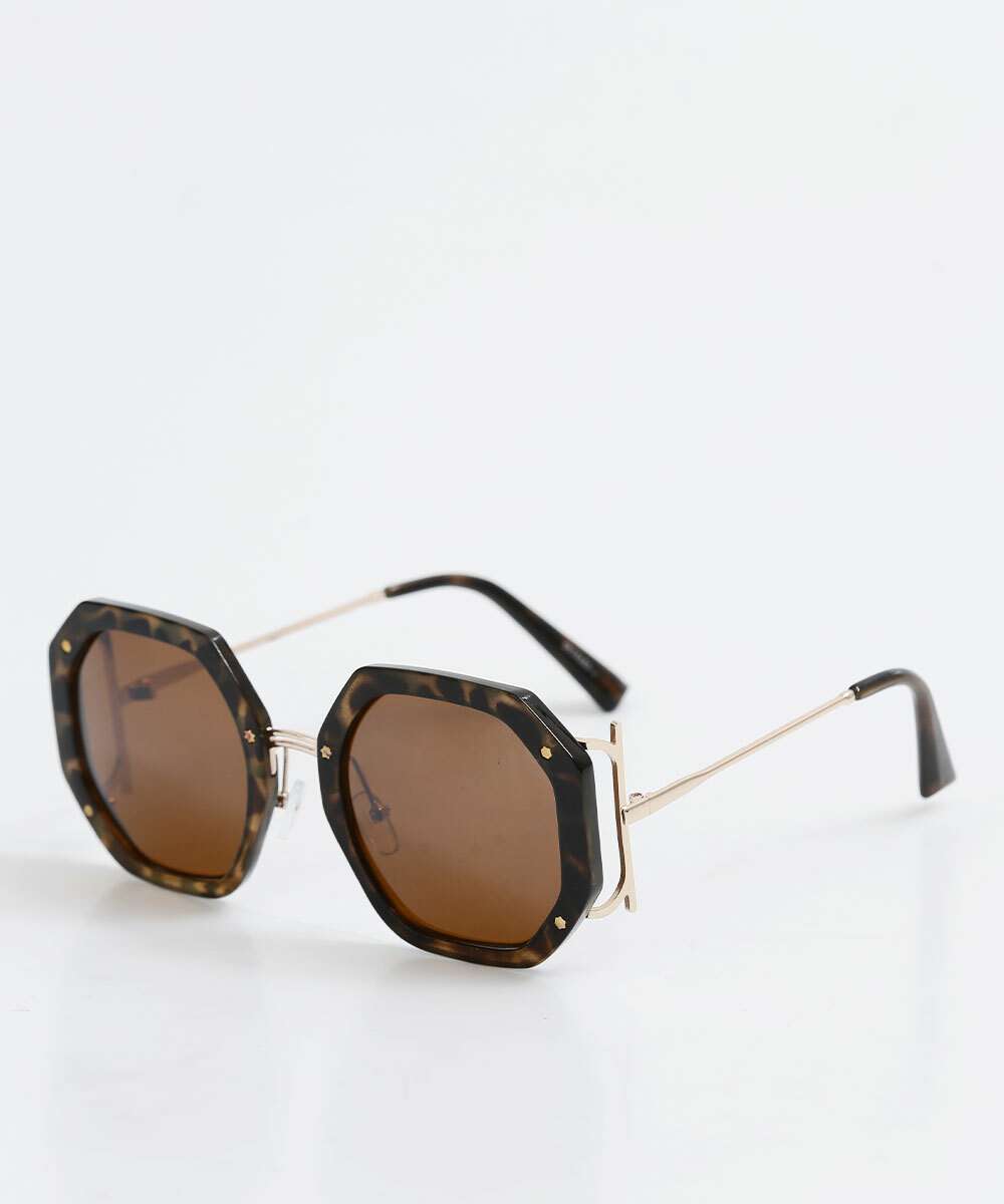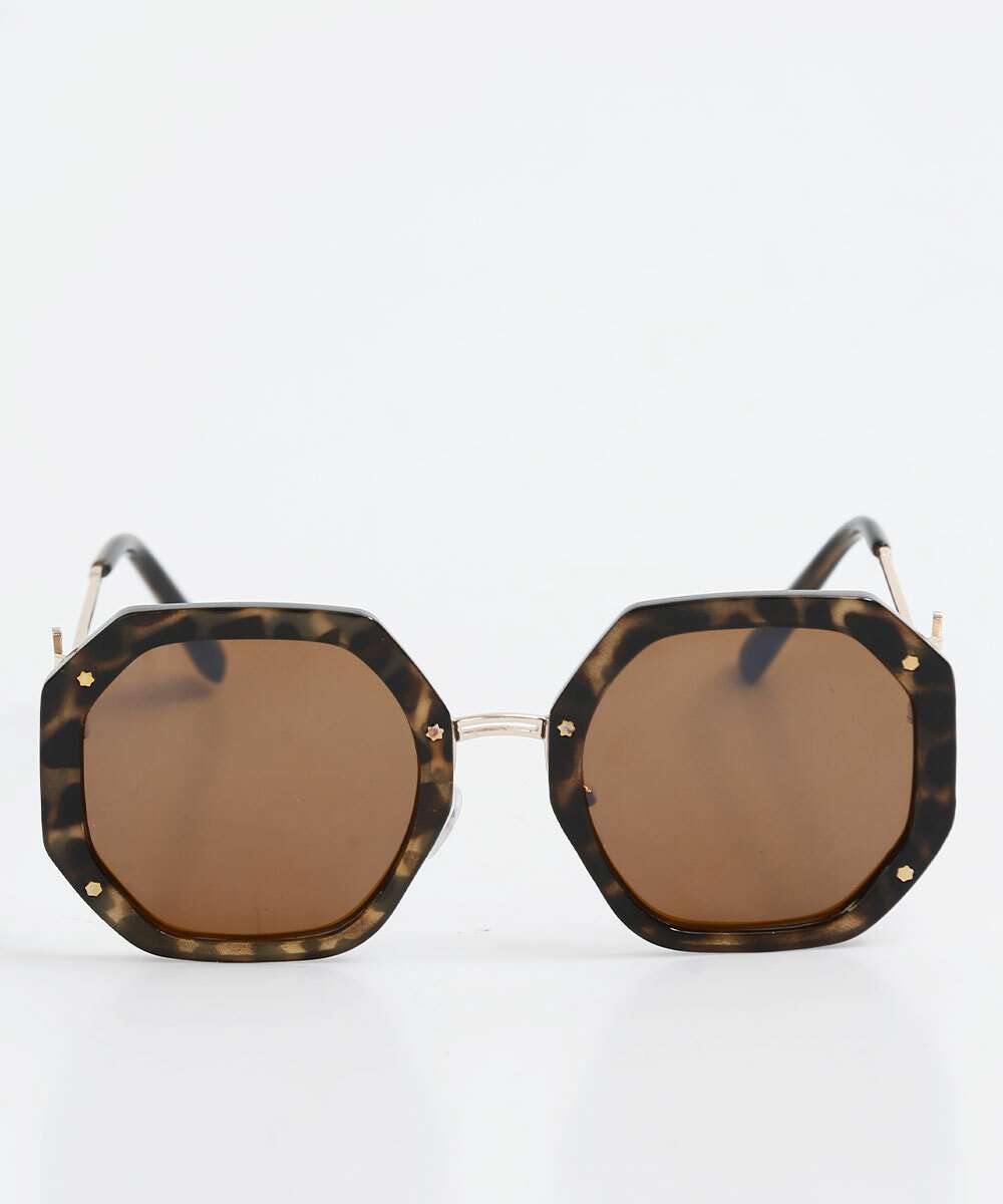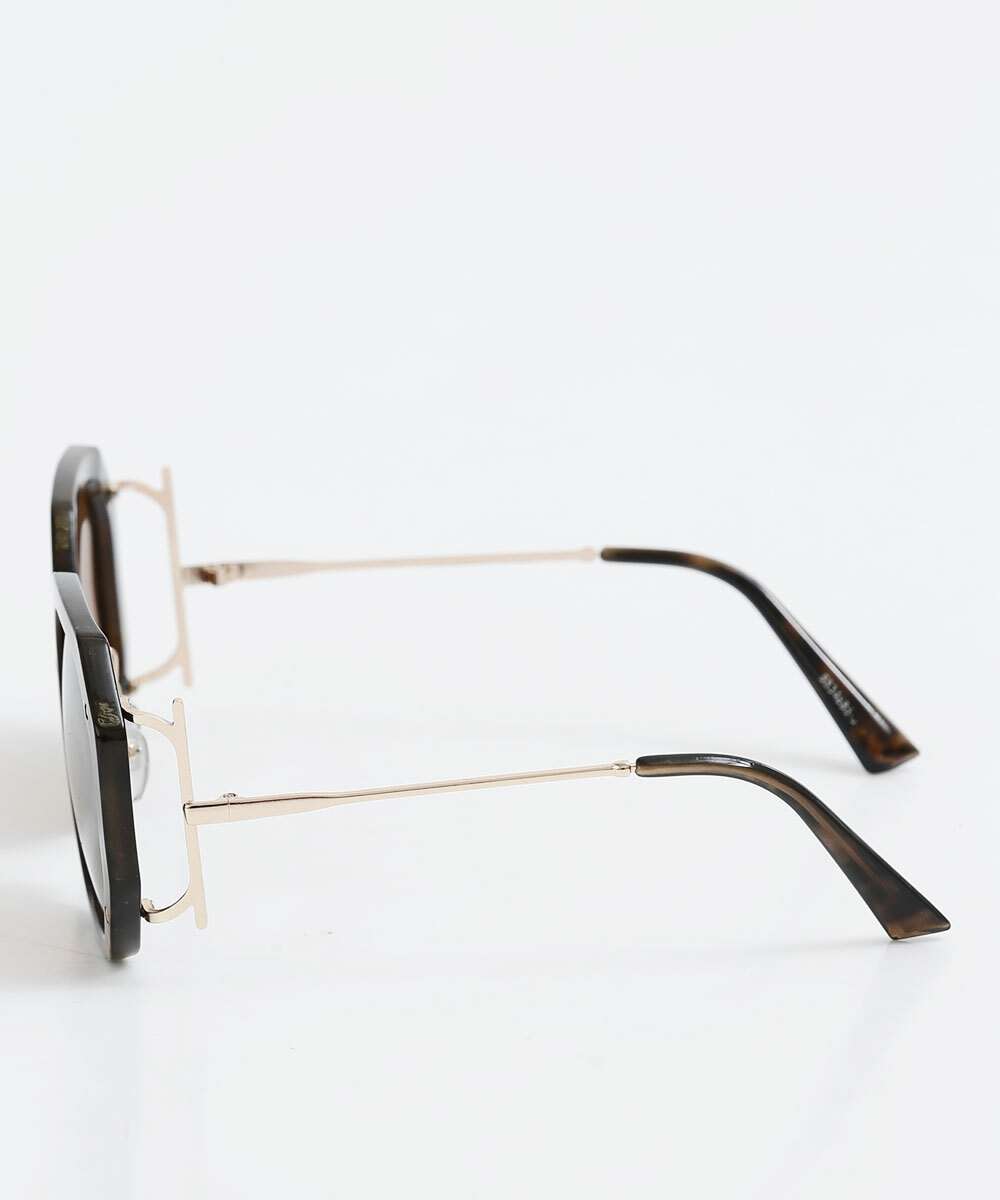 Óculos de sol feminino, modelo redondo, confeccionado em metal e acetato. Possui hastes, apoio nasal com silicone, mini tachas decorativas, lentes com proteção UVA e UVB.