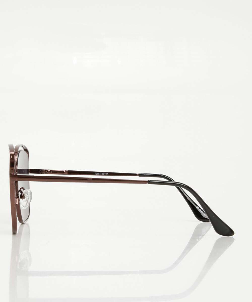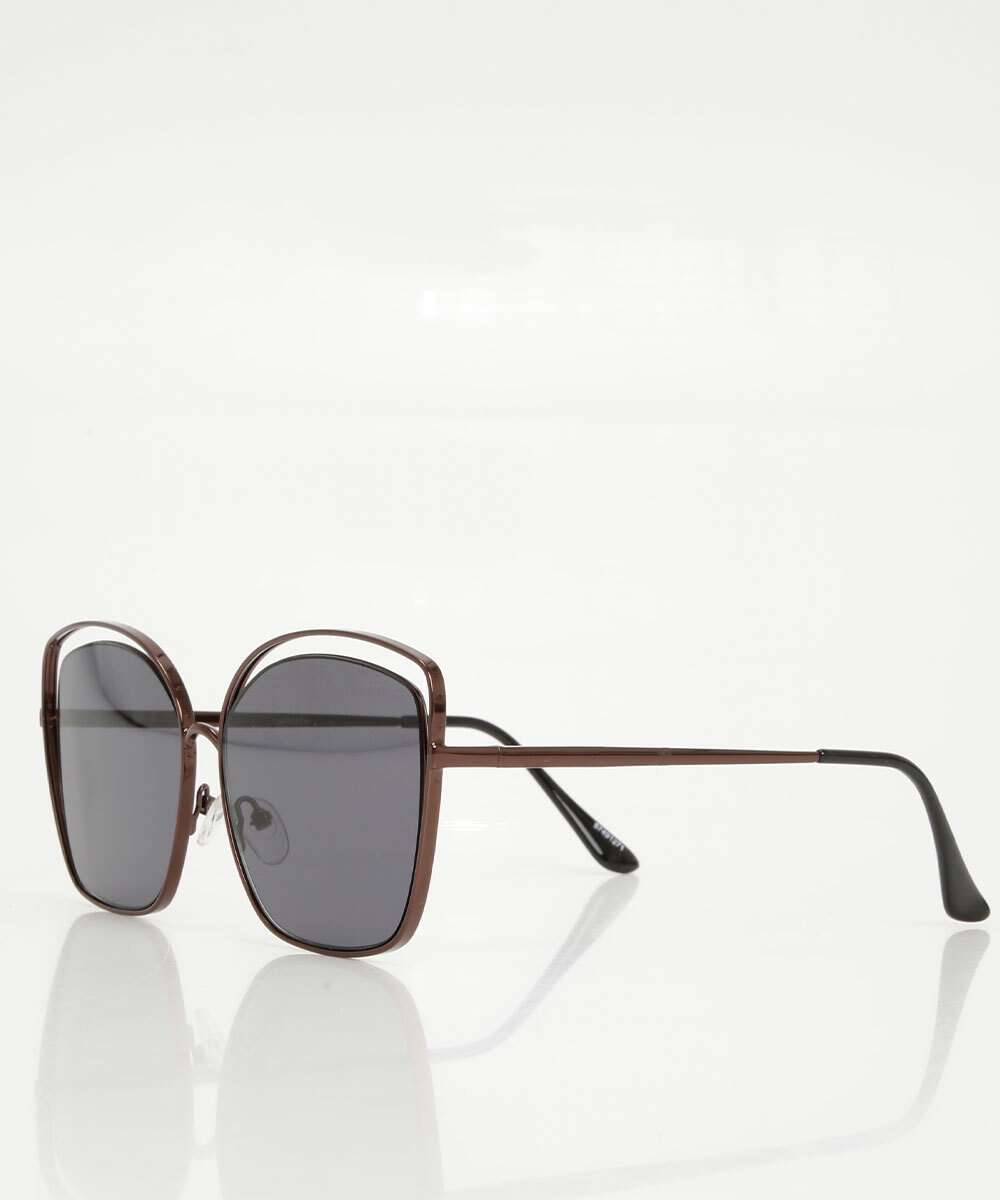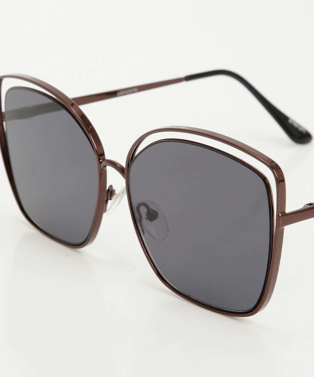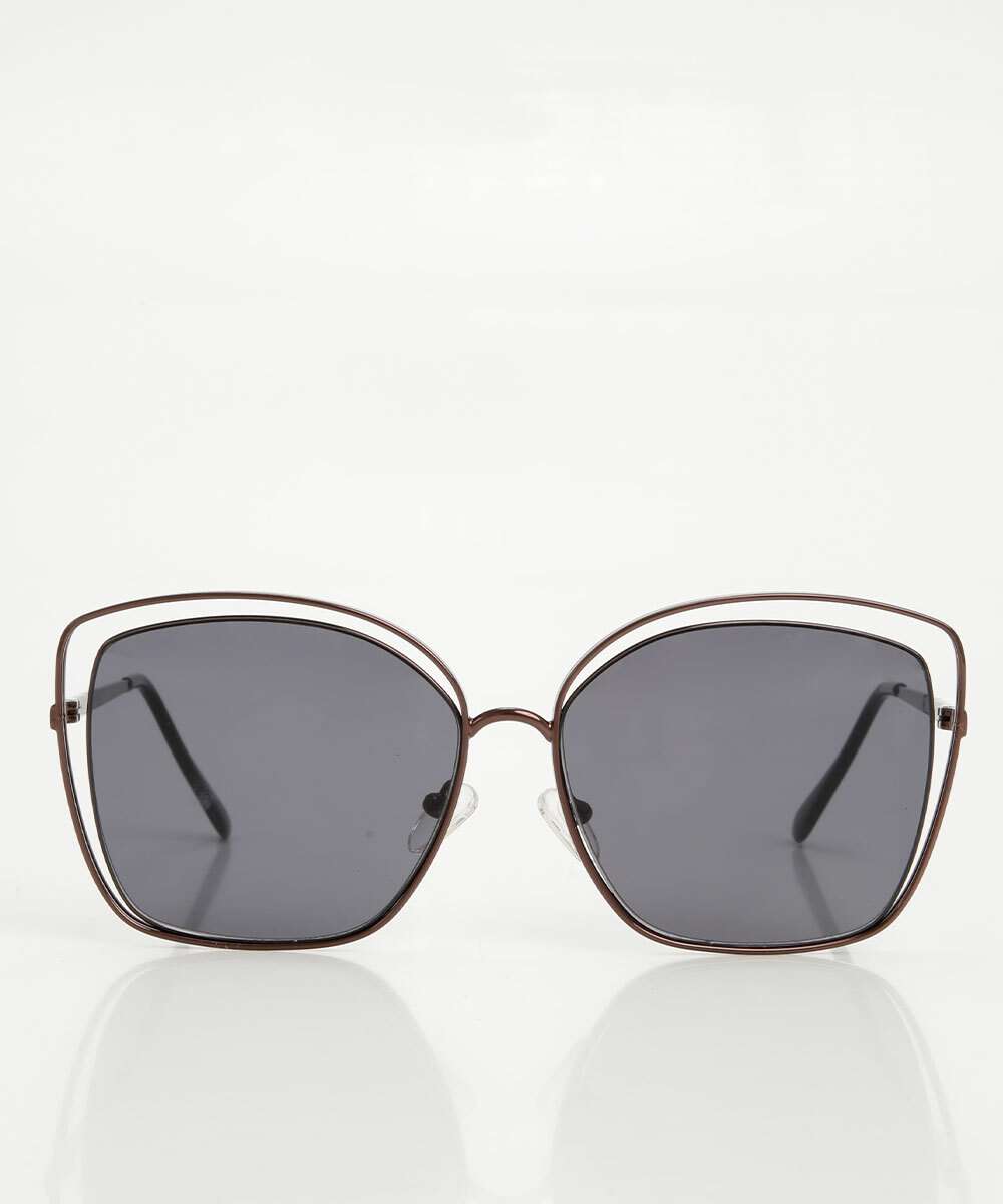 Óculos de sol feminino, modelo quadrado, confeccionado em metal. Possui hastes, apoio nasal, lentes com proteção UVA e UVB.