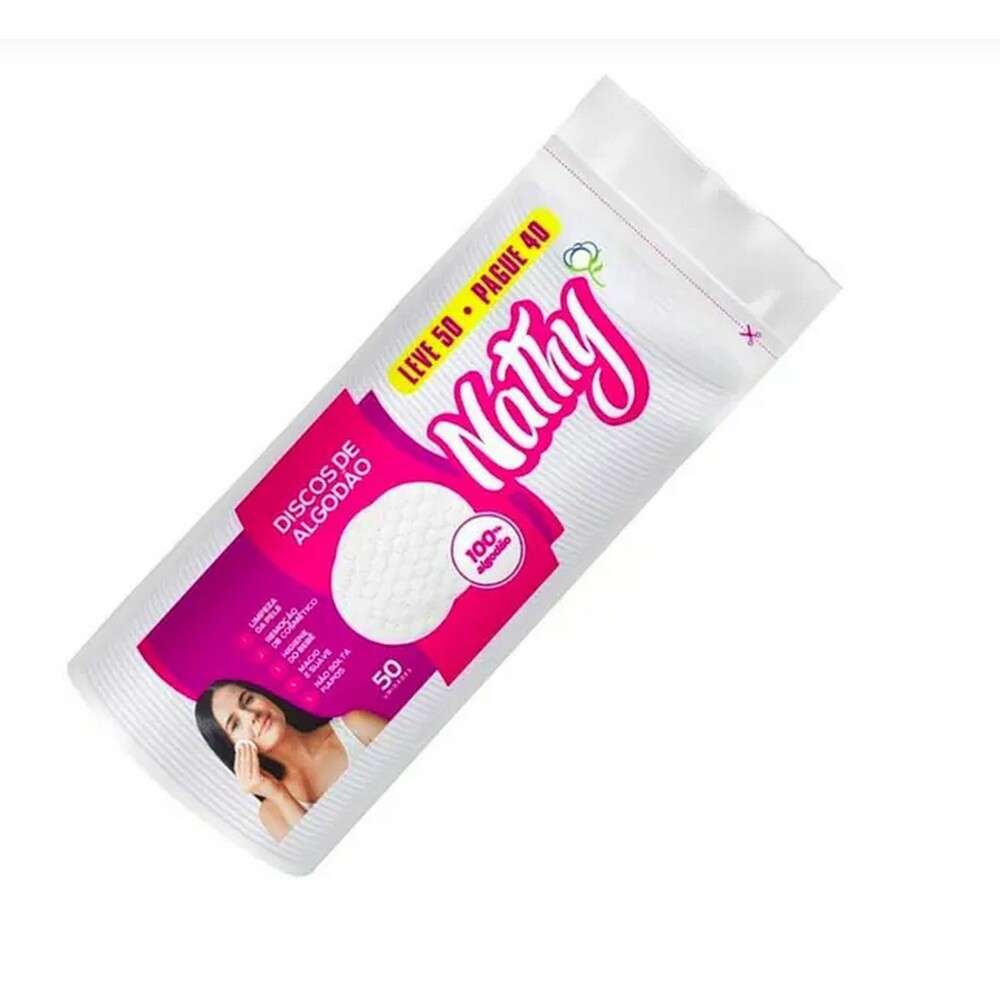 Algodão Em Disco Nathy 100Un O Algodão Em Disco Nathy é a escolha perfeita para quem busca praticidade e qualidade em seus cuidados diários. Com 100 unidades em cada embalagem, você terá algodão macio e resistente para diversas finalidades, desde a remoção de maquiagem até a aplicação de produtos de higiene. Indicações:Ideal para uso em limpeza de pele, aplicação de tônicos, esmaltes ou qualquer procedimento que necessite de um toque suave e eficaz. Tecnologia:O algodão Nathy é feito de fibras 100% naturais, proporcionando um toque delicado na pele. Sua estrutura não solta fiapos, garantindo um uso limpo e sem resíduos. Benefícios:Maciez: Conforto na aplicação em todos os tipos de pele.Resistência: Não se desmancha facilmente durante o uso.Versatilidade: Perfeito para a rotina de beleza e cuidados pessoais.Modo de uso:Retire um disco de algodão da embalagem.Utilize conforme necessário, seja para limpeza, aplicação de produtos ou remoção de esmalte.Descarte o disco utilizado de forma adequada.Resultado:Com o Algodão Em Disco Nathy, você garante uma experiência de cuidado pessoal mais prática e eficaz, deixando sua pele limpa e preparada para os próximos passos da sua rotina de beleza. Contém: 100 discos de algodão. Precauções:Armazenar em local seco e arejado. Uso externo. Mantenha fora do alcance de crianças. Informações Adicionais: Não realizamos testes em animais. Imagens meramente ilustrativas.