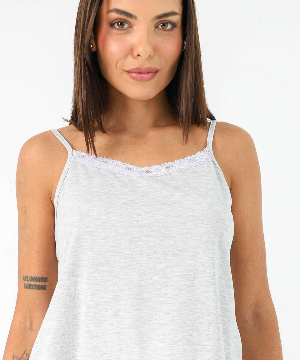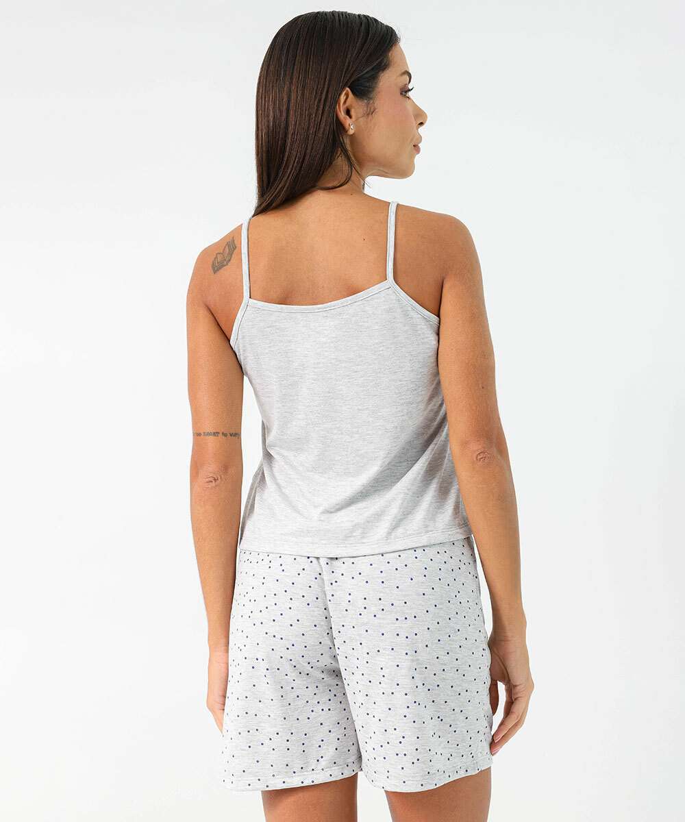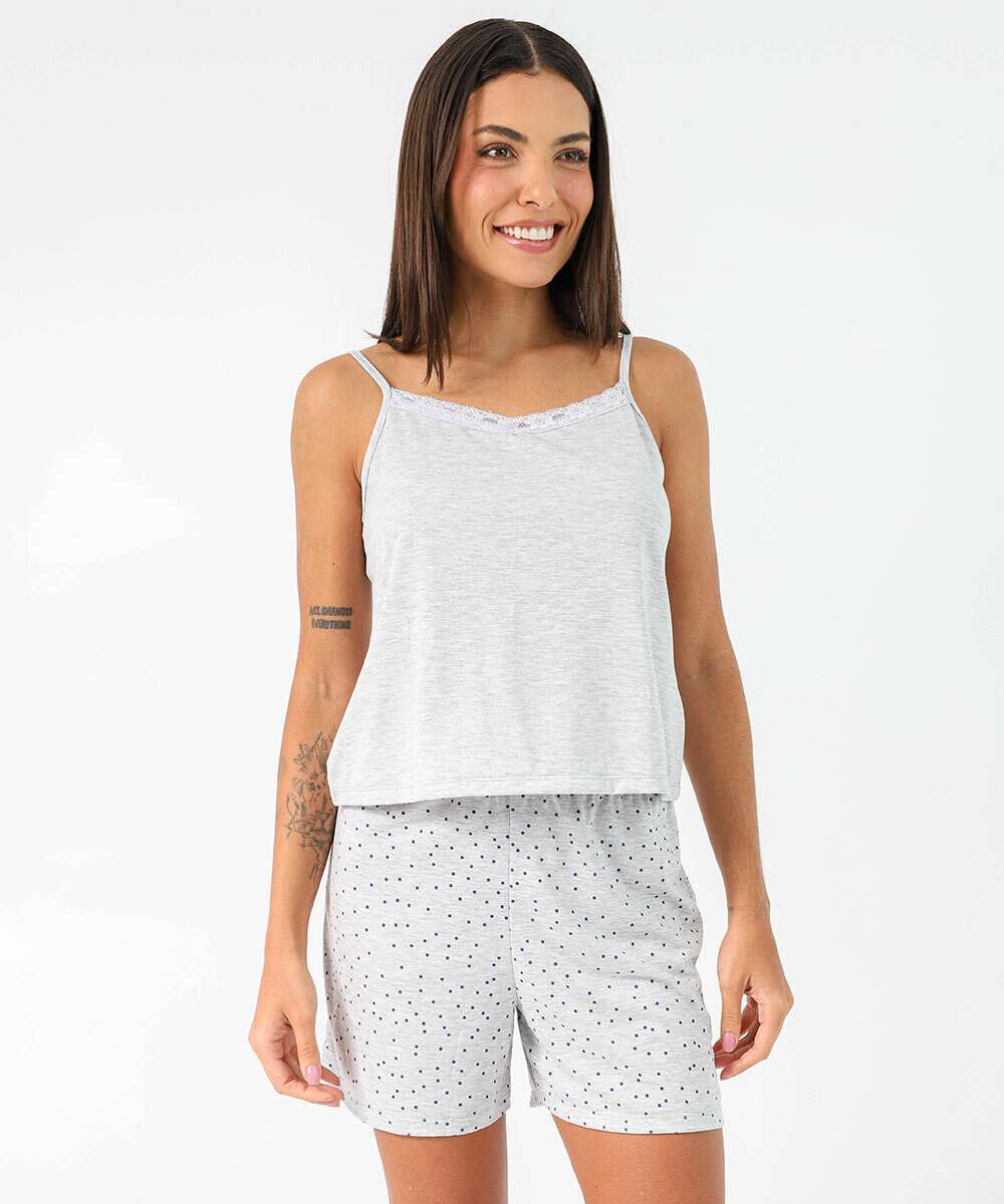 Baby Doll Recorte Renda Poá Marisa Cinza