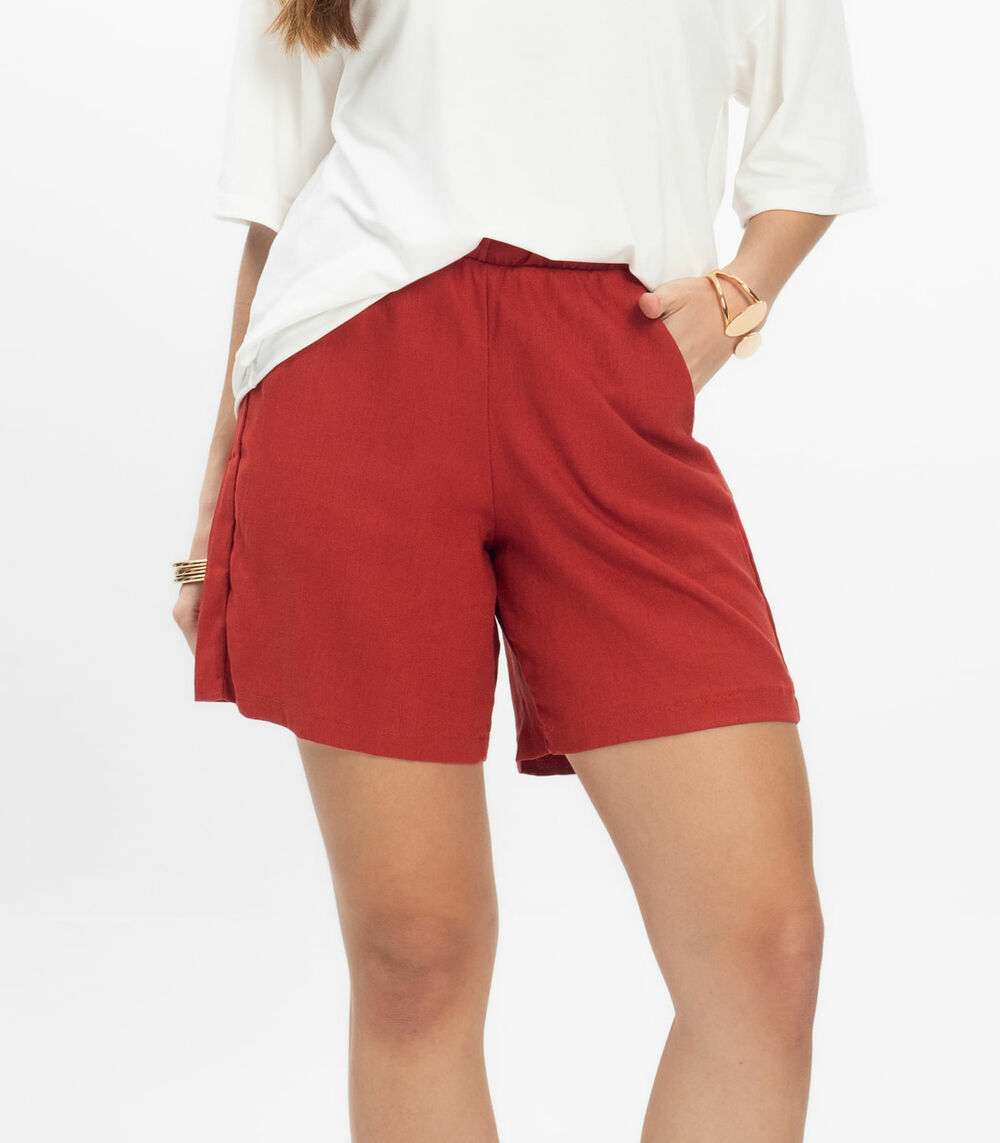 Bermuda Feminina Tecido Linho Rovitex Vermelho