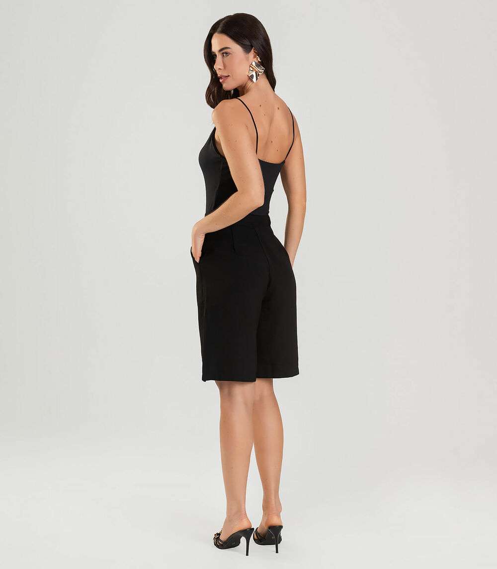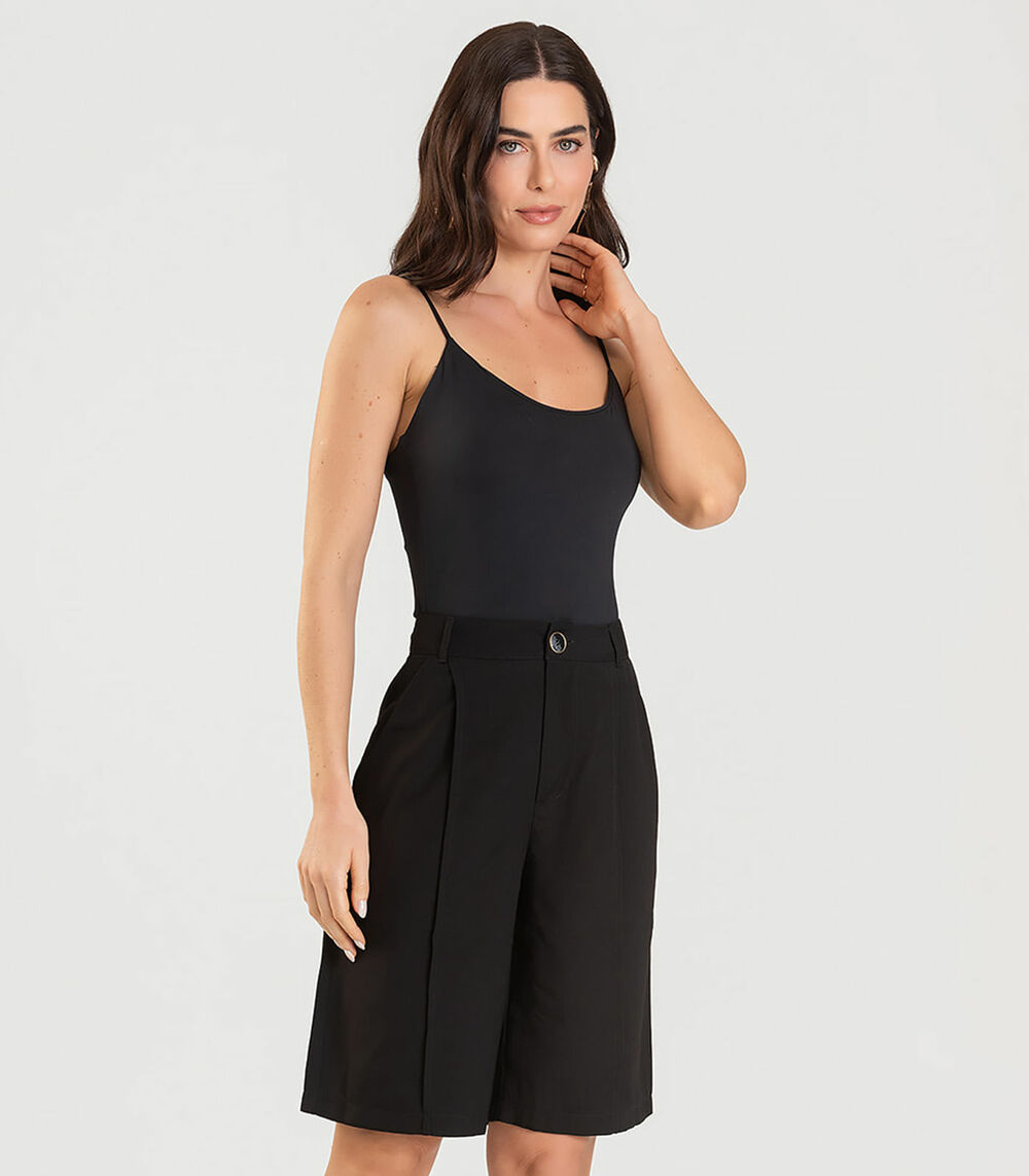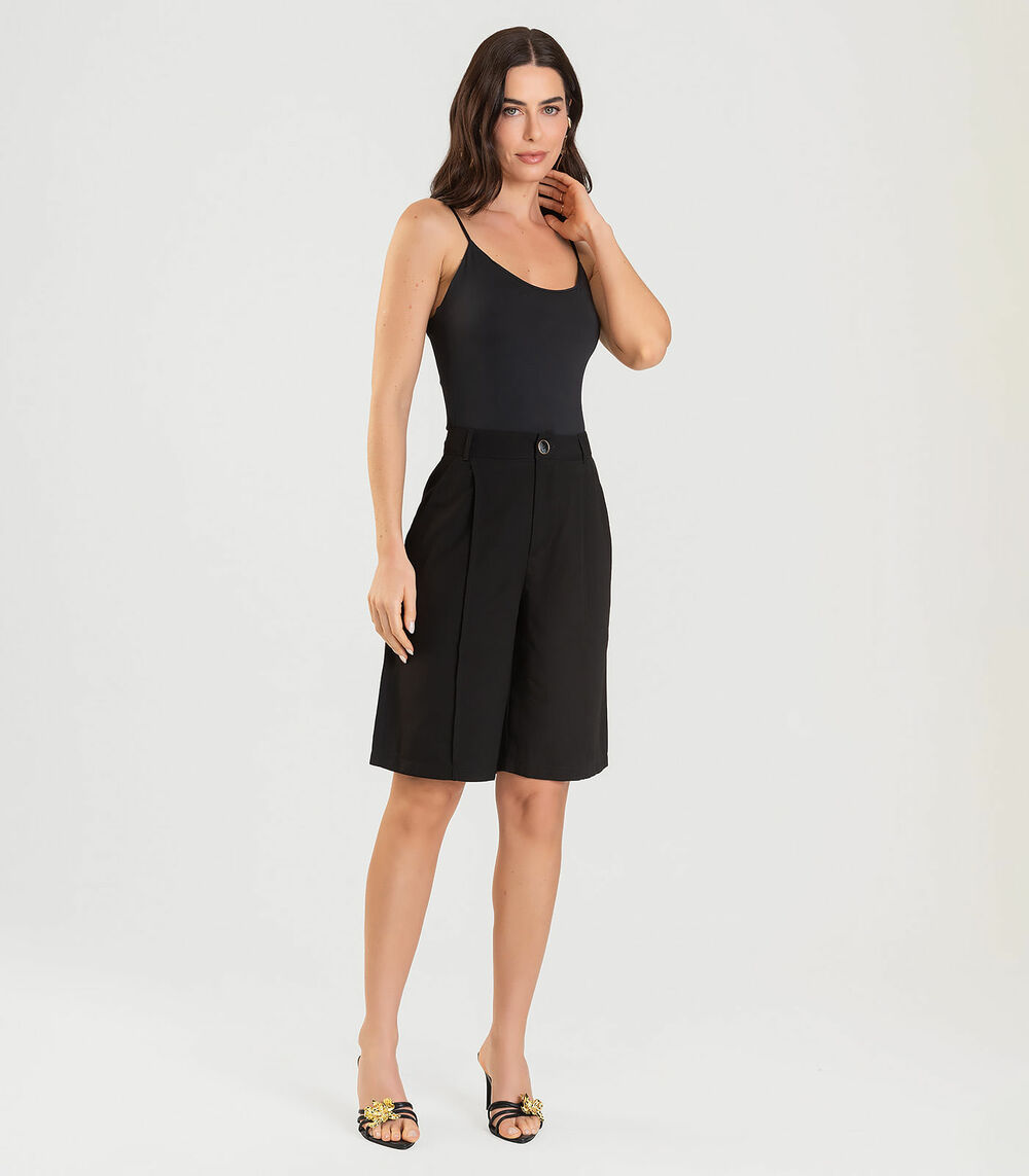 Bermuda Jorts Feminina Reta Em Sarja Dianna Preto