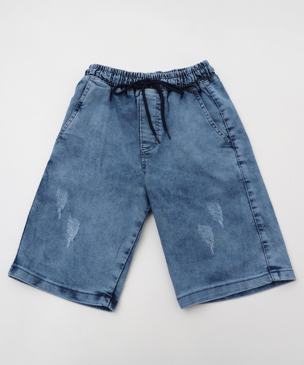 Bermuda Juvenil Jeans Jogger Bolsos Puídos Tam 10 a 16 Azul