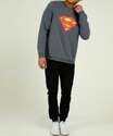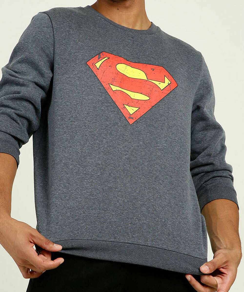 Blusão masculino confeccionado em tecido moletom. Possui gola redonda, estampa frontal Super Homem, personagem Liga da Justiça, manga longa, acabamento e costura no tom.
