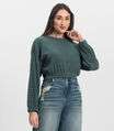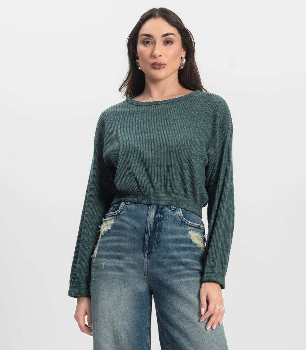 Blusão Feminino Canelado Com Elástico Nolita Verde