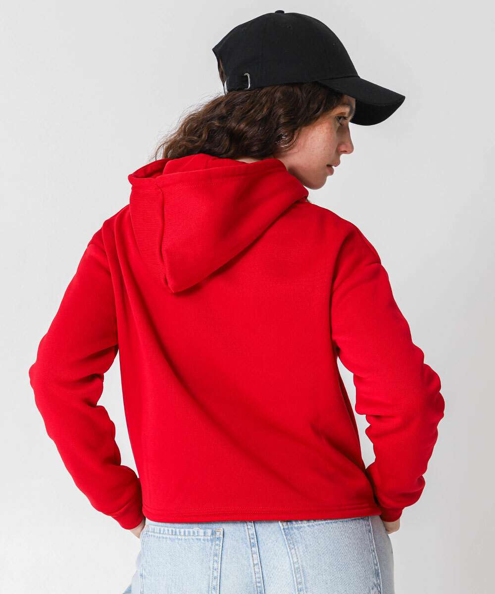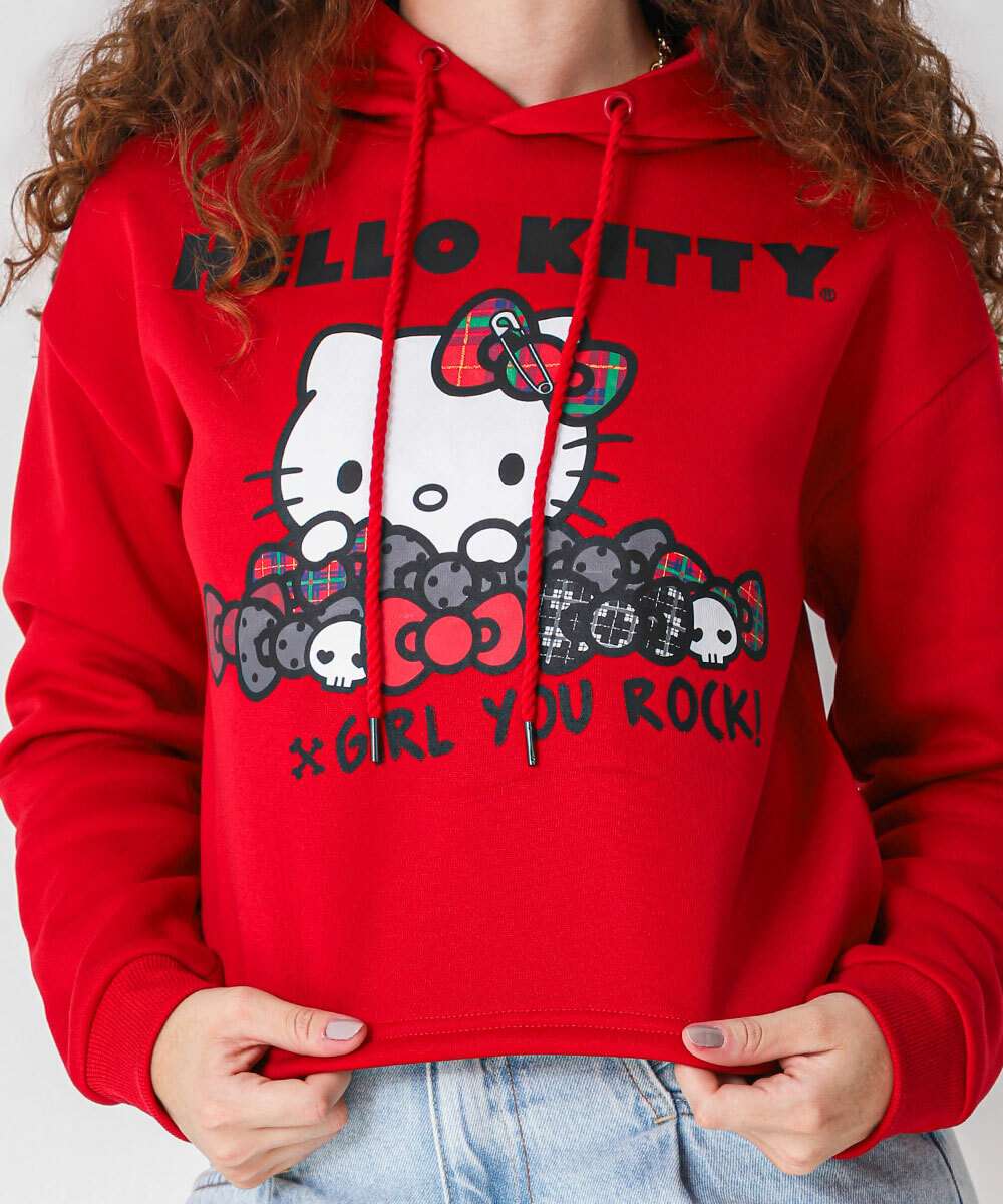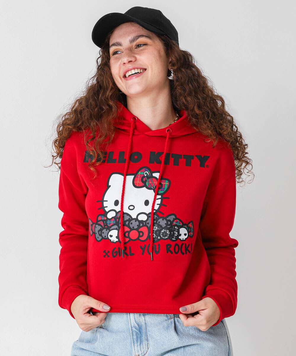 Blusão Feminino Cropped Moletom Hello Kitty Vermelho
