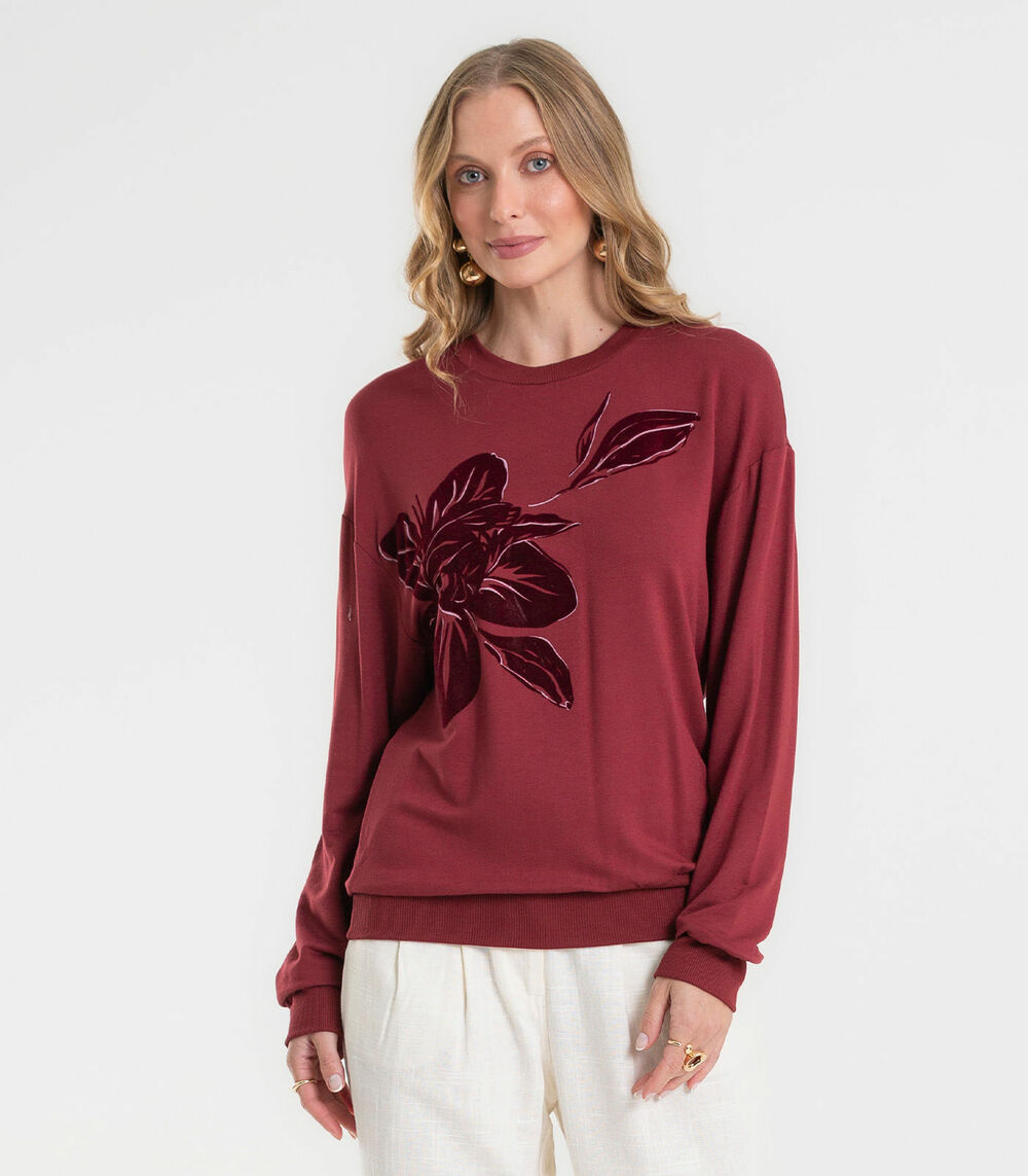 Blusão Feminino Em Molecotton Estampado Rovitex Vermelho