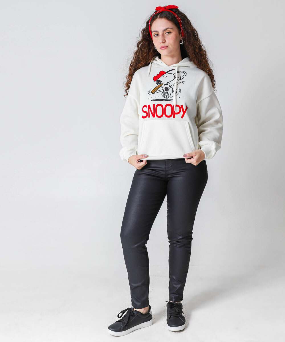 Blusão Feminino Moletom Flanelado Snoopy Off White