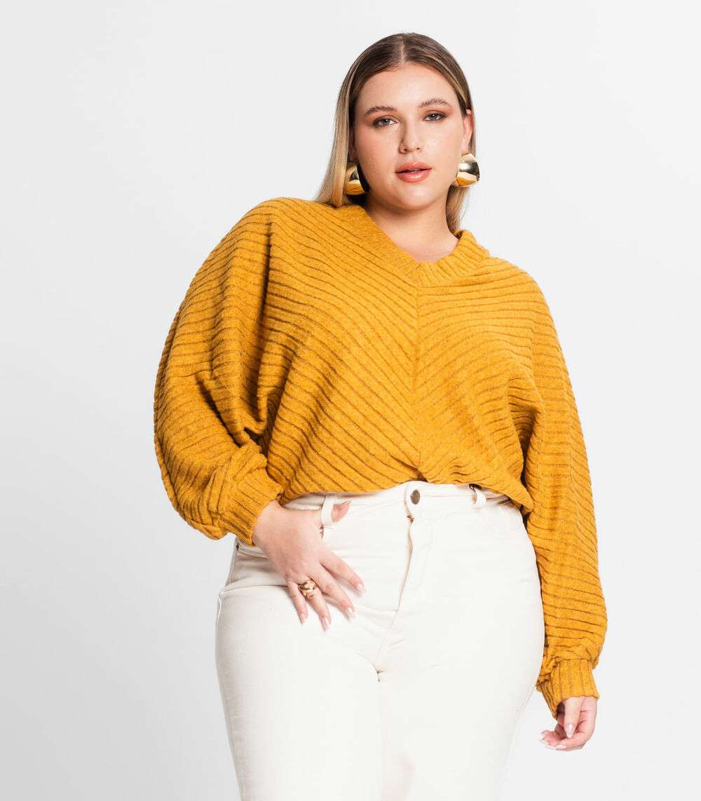 Blusão Feminino Plus Size Canelado Secret Glam Amarelo