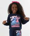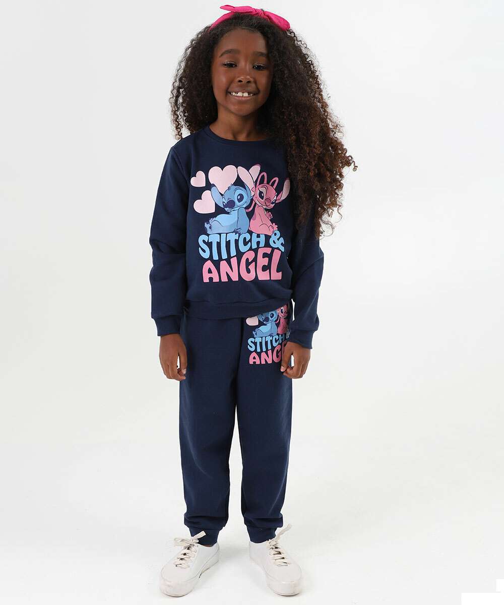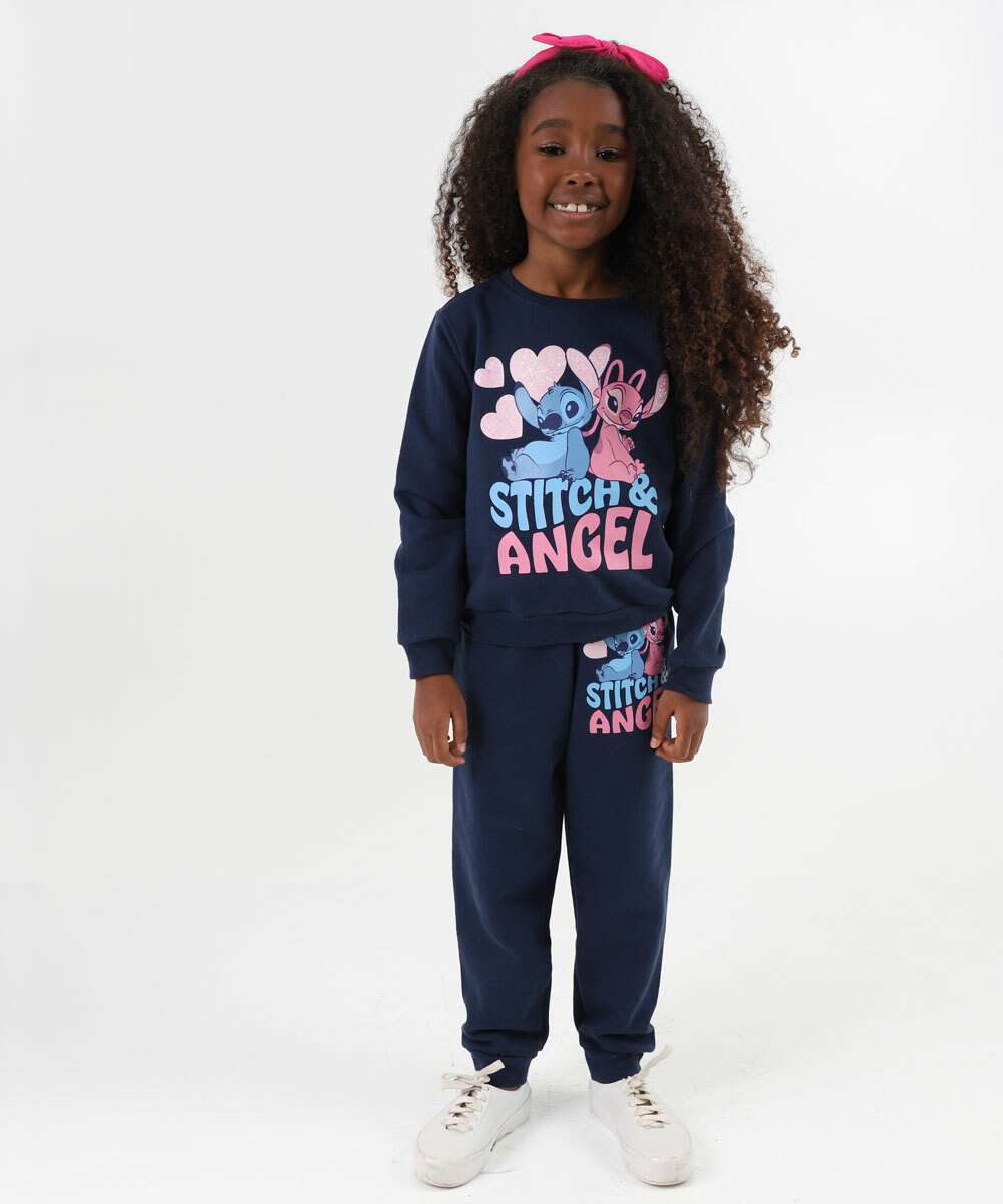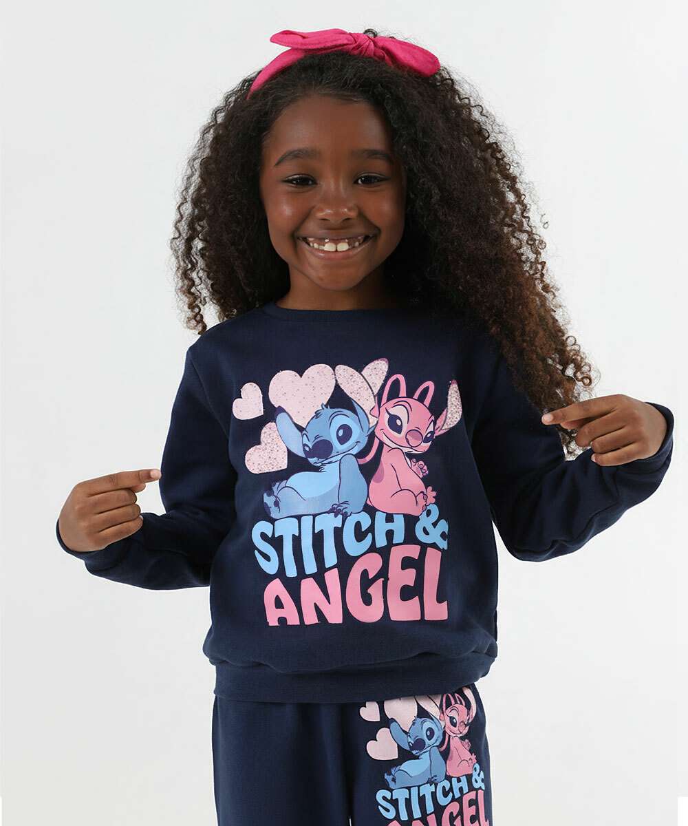 Blusão Infantil Moletom Stitch E Angel Glitter Tam 4 a 10 Azul