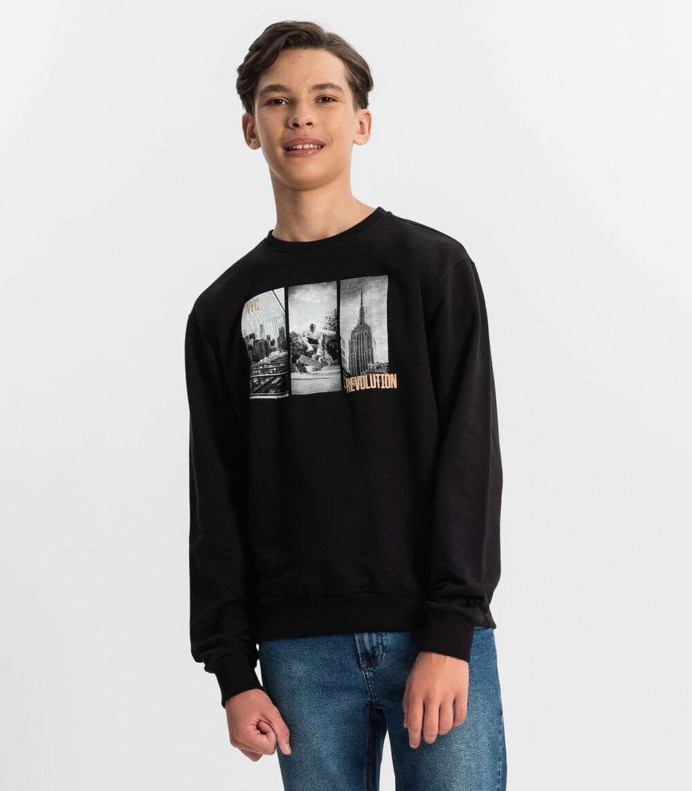 Blusão Juvenil Menino Em Moletom Minty Preto
