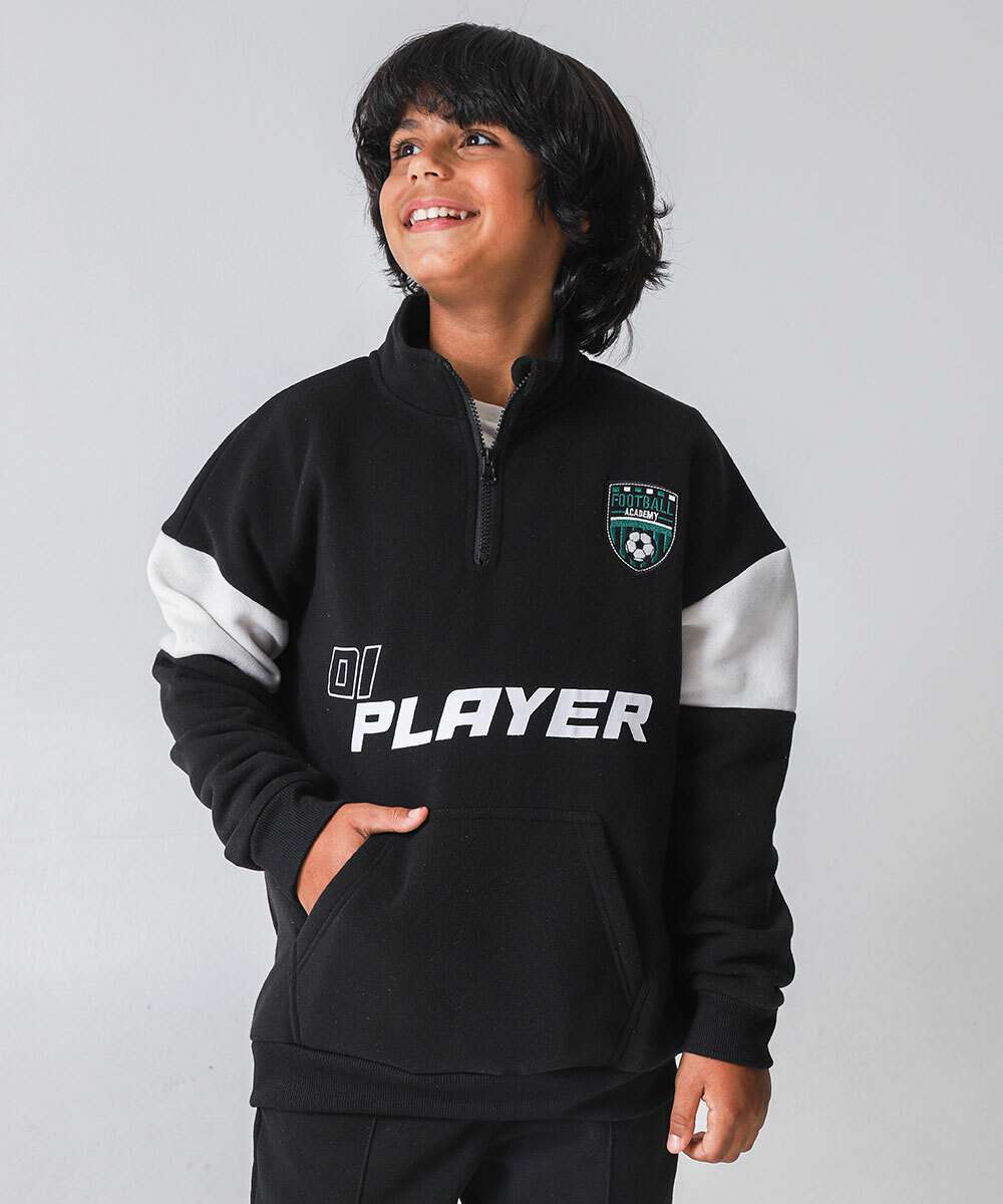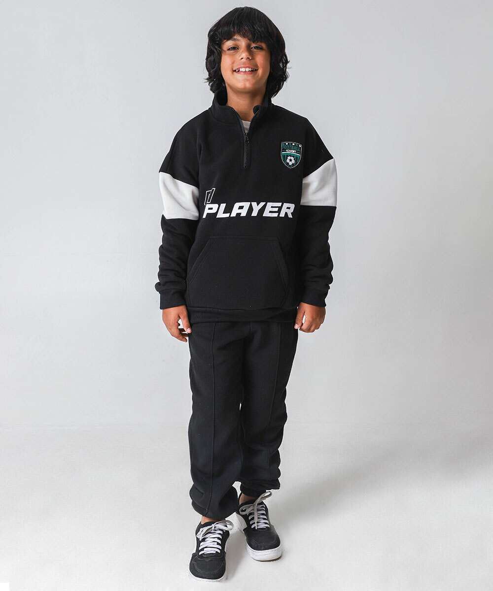 Blusão Juvenil Moletom Estampa Esportiva Zíper MR Tam 10 a 16 Preto