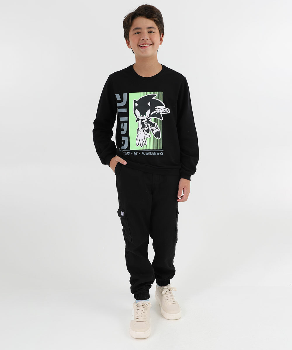 Blusão Juvenil Moletom Flanelado Sonic Tam 10 a 16 Preto
