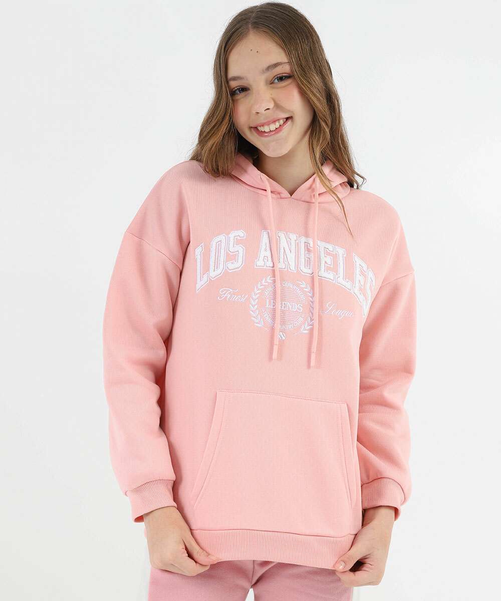 Blusão Juvenil Moletom Oversized Marisa Tam 10 a 16 Rosa