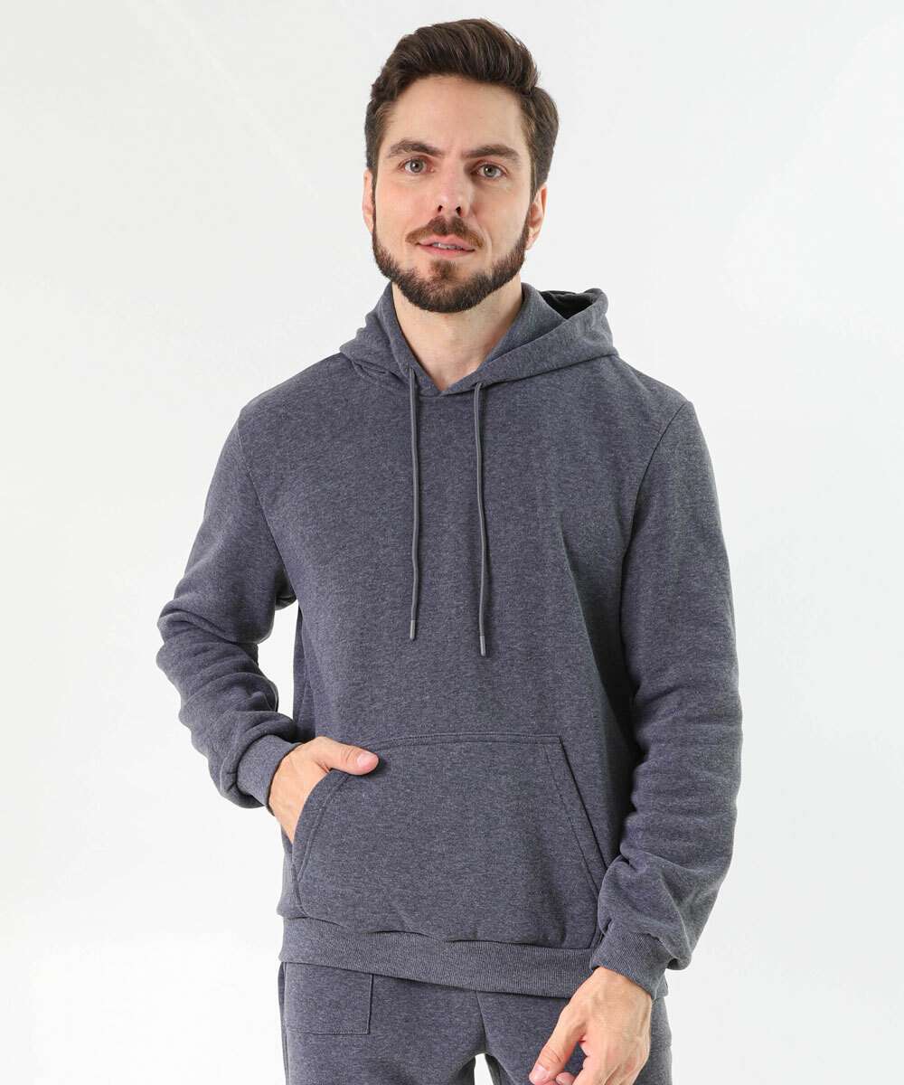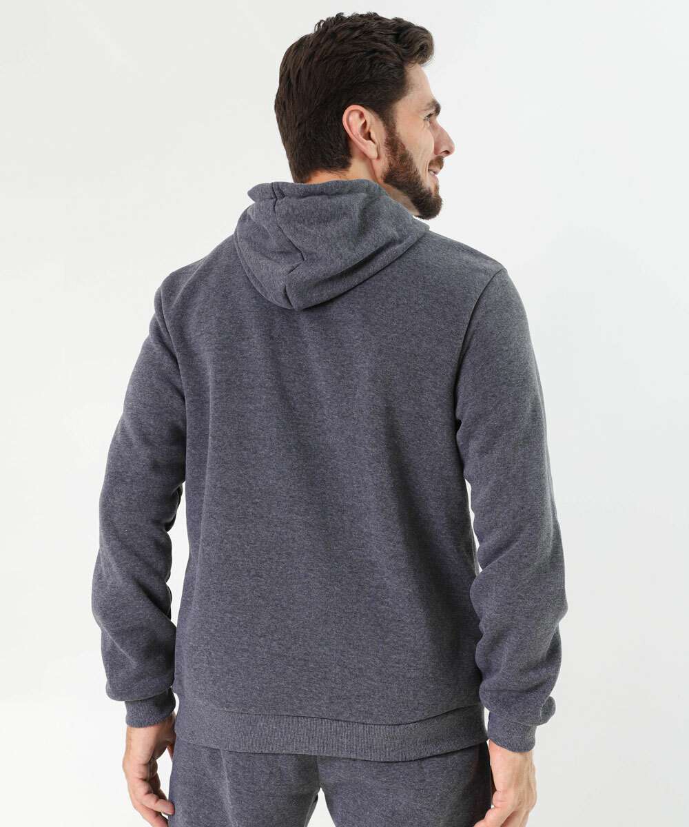 Blusão Masculino Fitness Moletom Canguru Capuz MR Cinza