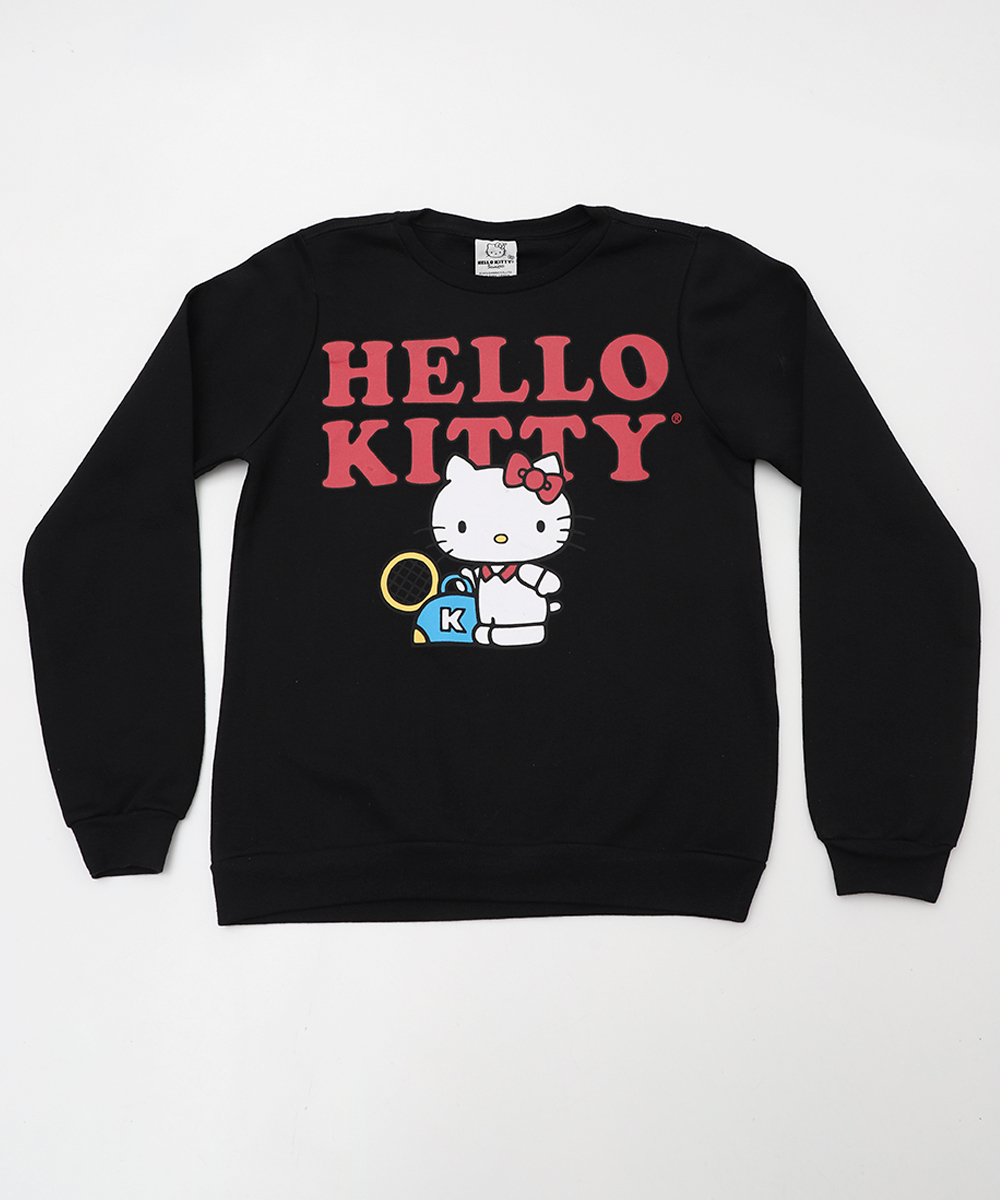 Blusão Moletom Juvenil Hello Kitty Preto Tam 4 a 10