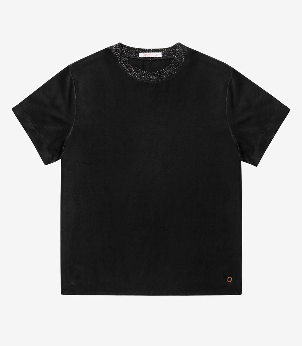 Desenvolvida em Tecido Slub Acetinado, a Blusa Secret Glam traz um toque de sofisticação e modernidade ao seu visual. Com gola em retilínea que proporciona charme extra, a peça conta ainda com mangas curtas de acabamento em bainha, garantindo conforto e leveza. O brilho sutil do tecido acetinado torna esta blusa perfeita tanto para composições casuais quanto para produções mais elegantes. Aposte nesta peça versátil para elevar seu guarda-roupa com estilo e praticidade