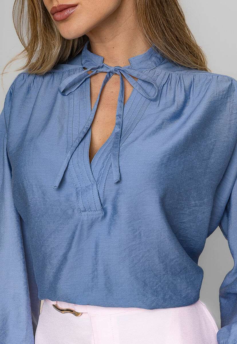 Blusa Alfaiataria Com Gola V Laço Azul Salvatore