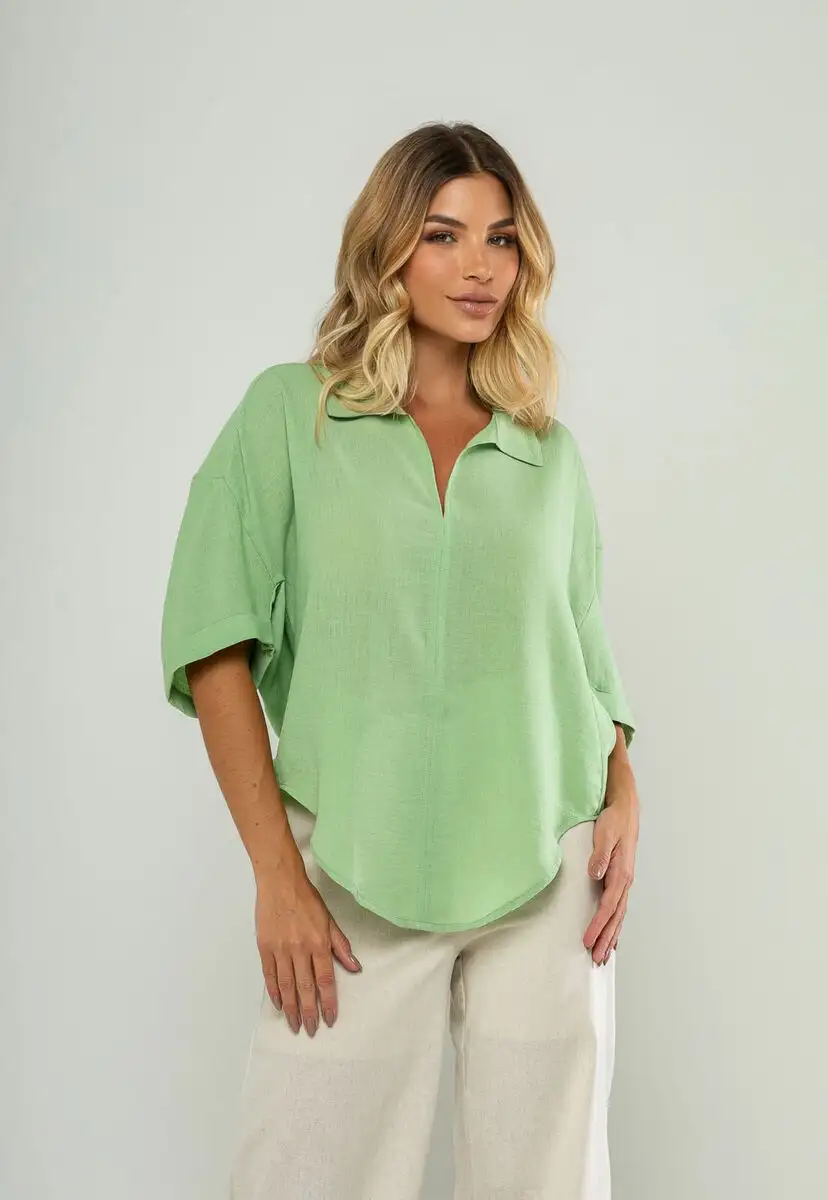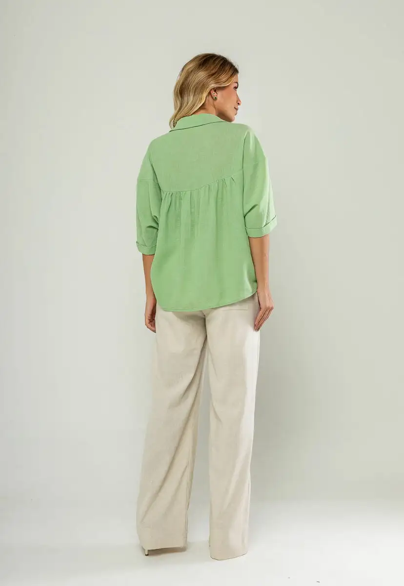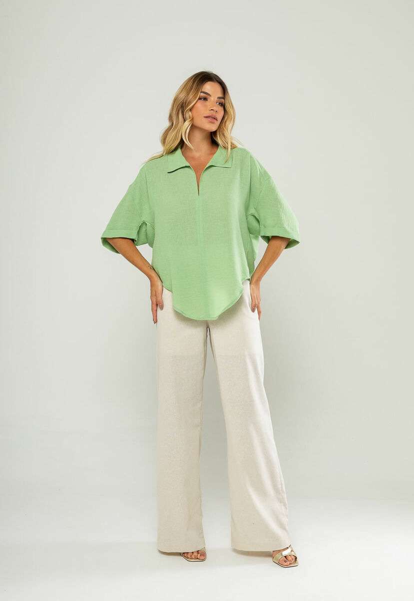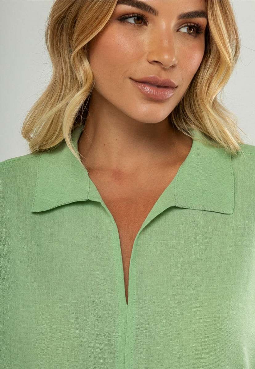 Blusa Ampla Manga Curta E Decote V Verde Salvatore