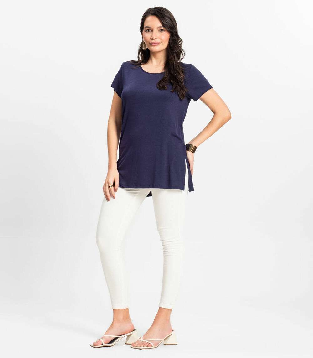 Blusa Básica Alongada Feminina Rovitex Azul