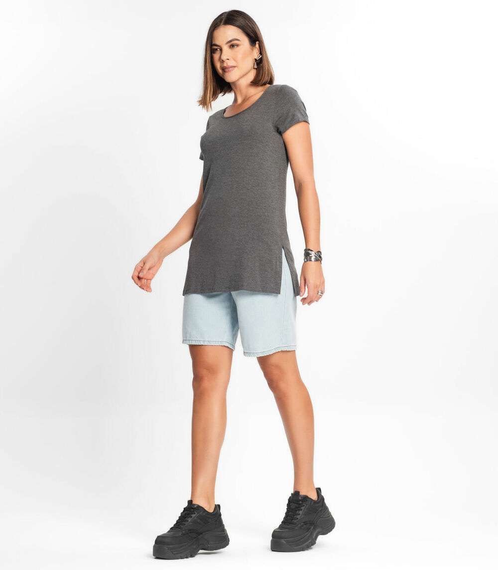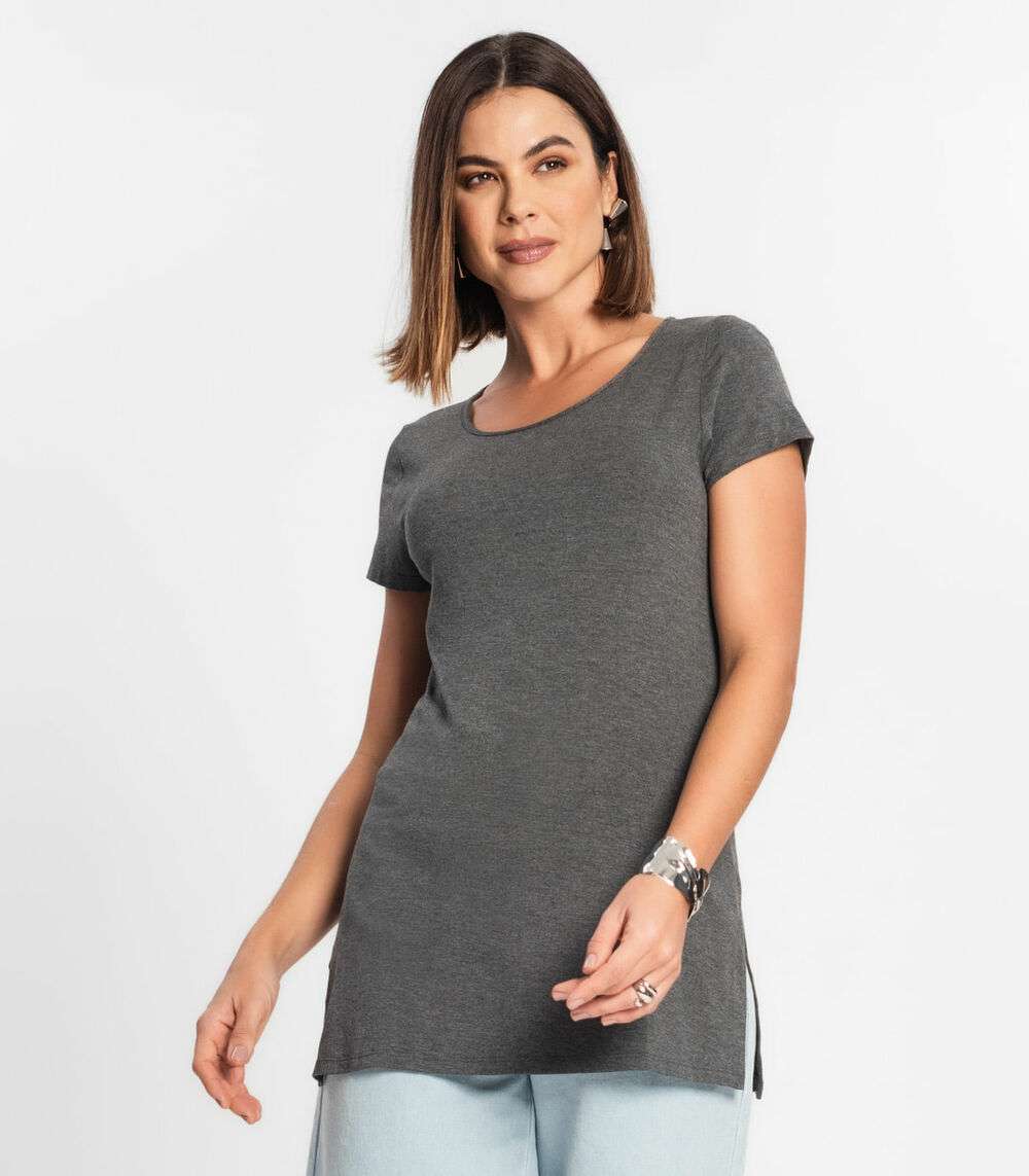 Blusa Básica Alongada Feminina Rovitex Cinza