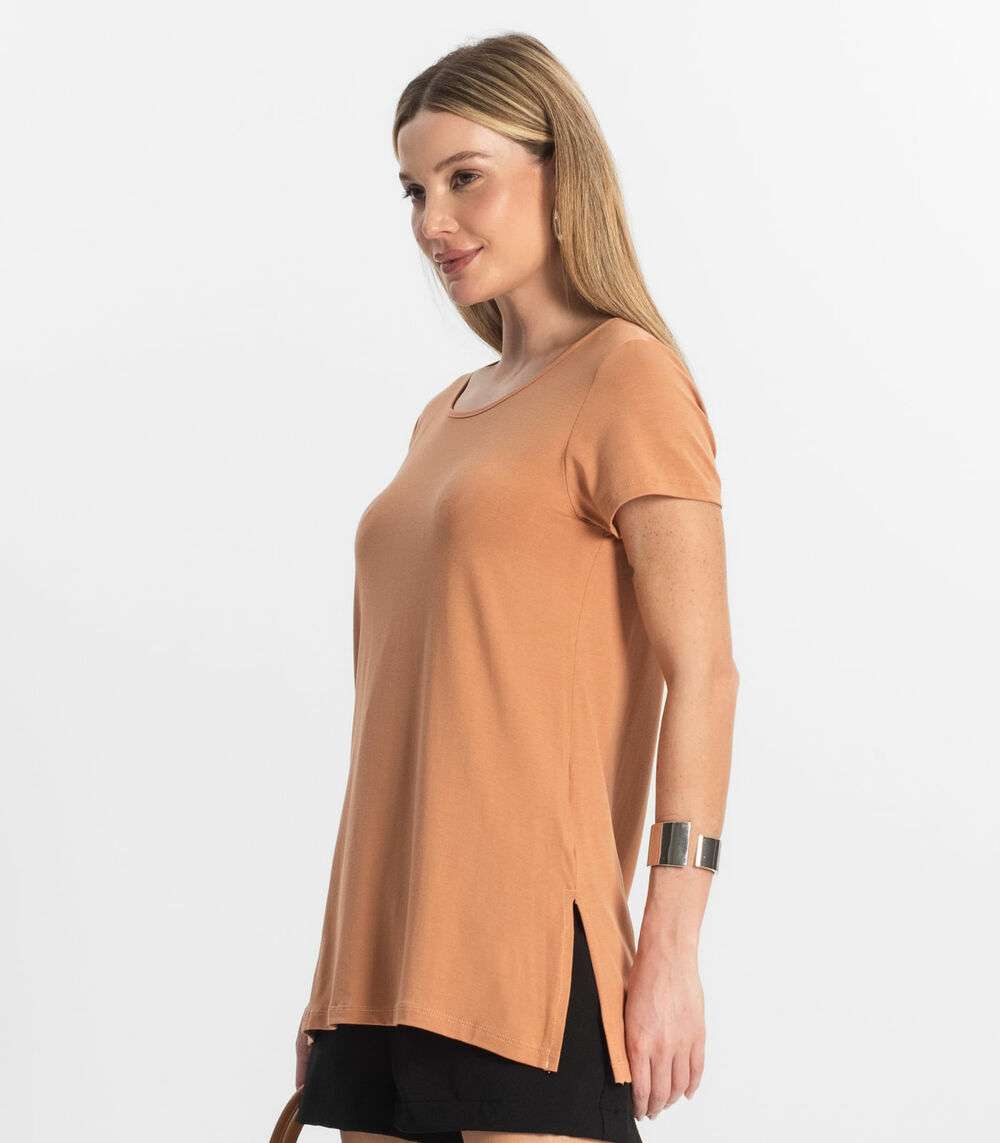 Blusa Básica Alongada Feminina Rovitex Marrom