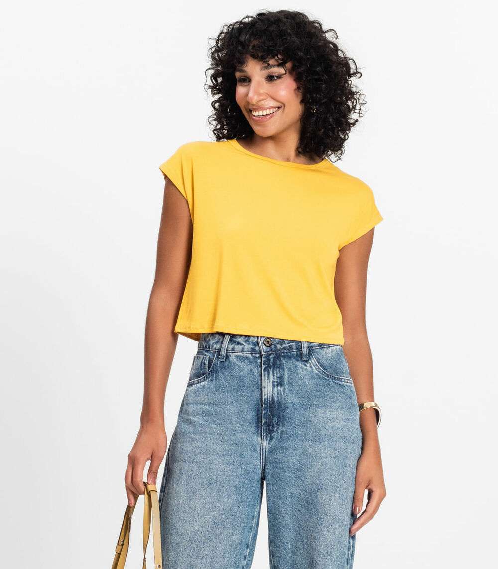Blusa Básica Feminina Viscotorcion Rovitex Amarelo