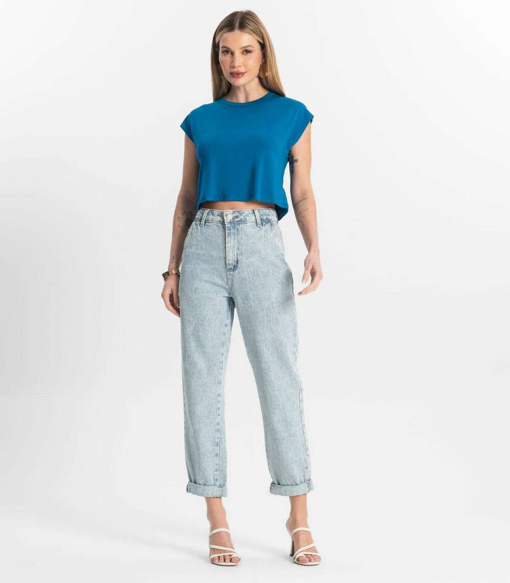 Blusa Básica Feminina Viscotorcion Rovitex Azul