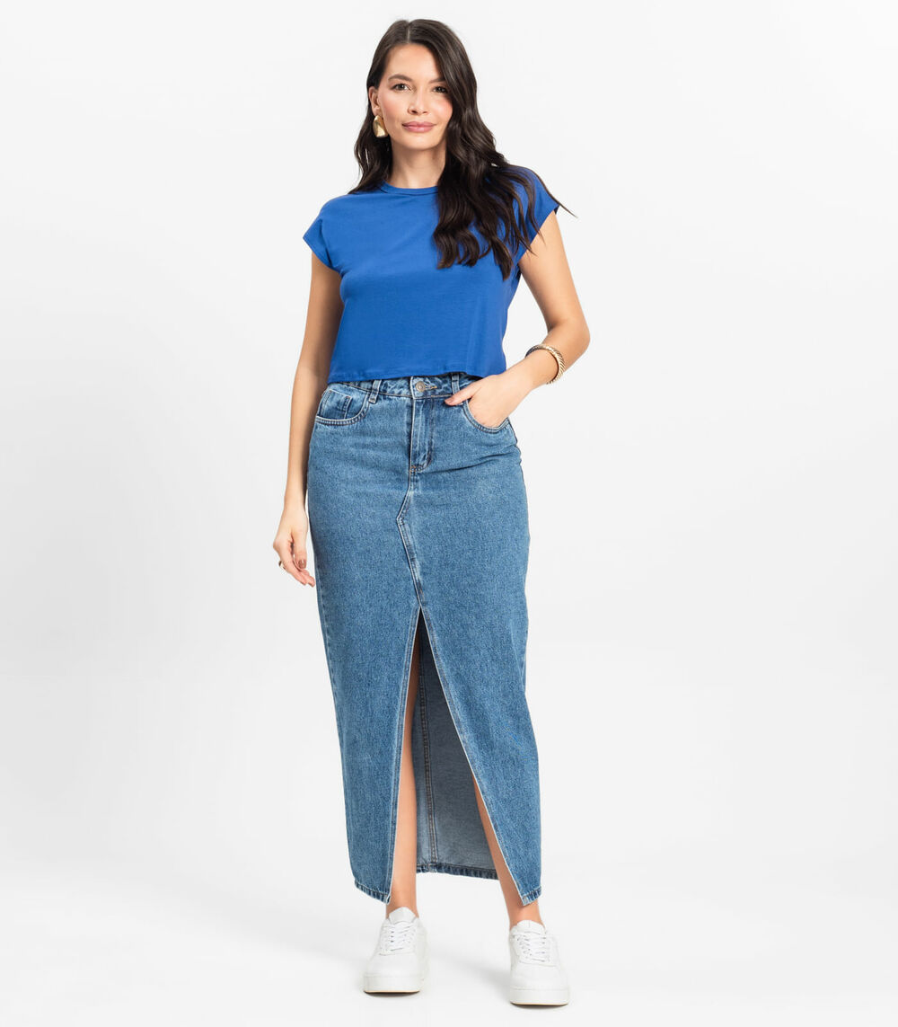 Blusa Básica Feminina Viscotorcion Rovitex Azul