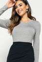 Blusa Básica Manga Longa e Gola Redonda Malha Mescla