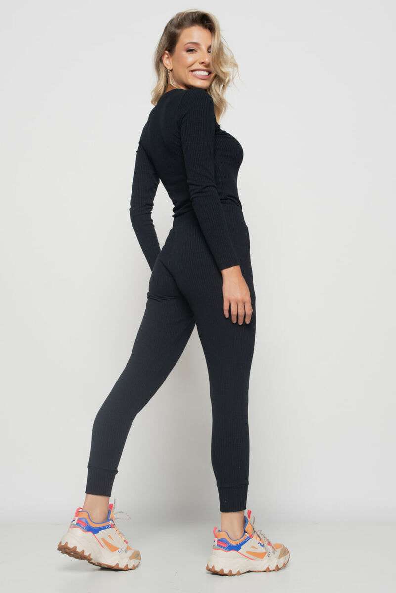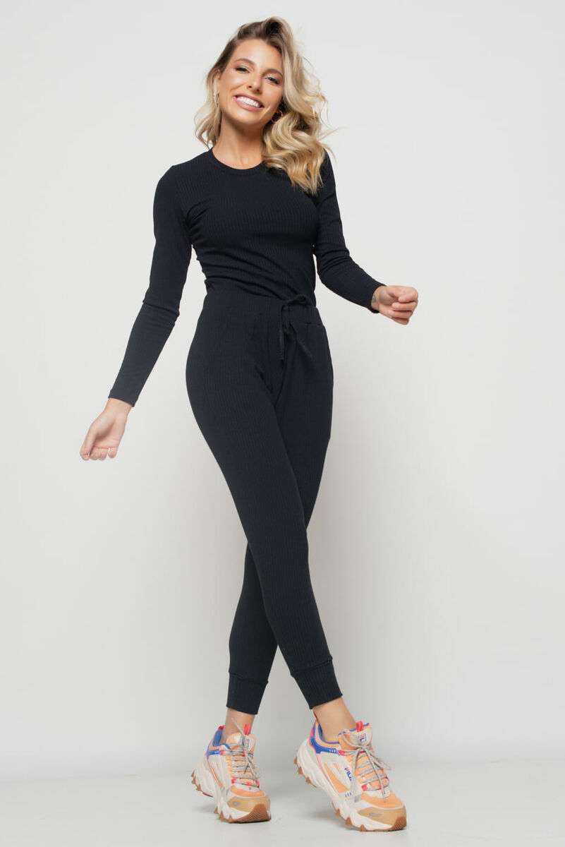 Blusa Básica Manga Longa e Gola Redonda Malha Preta