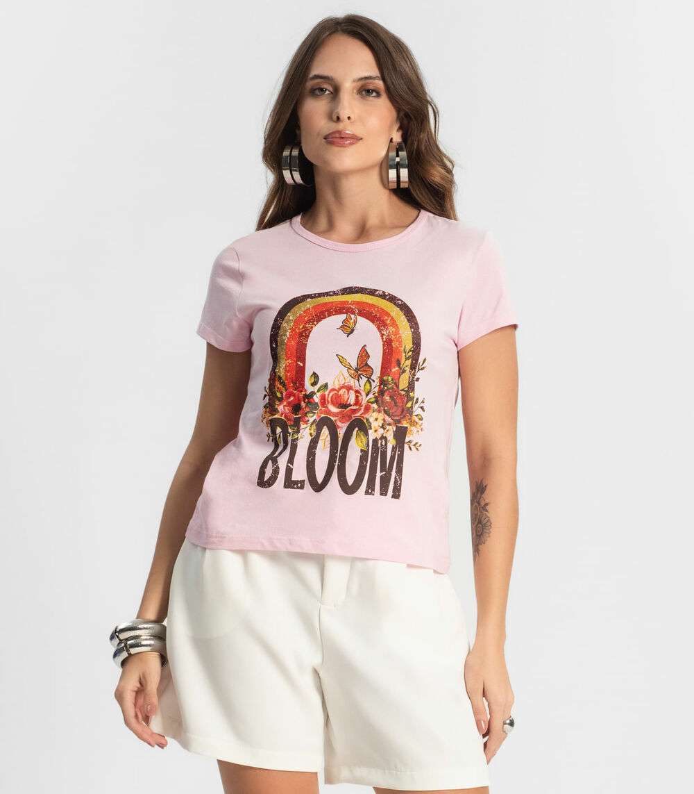 Blusa Baby Look Feminina Estampada Select Rosa