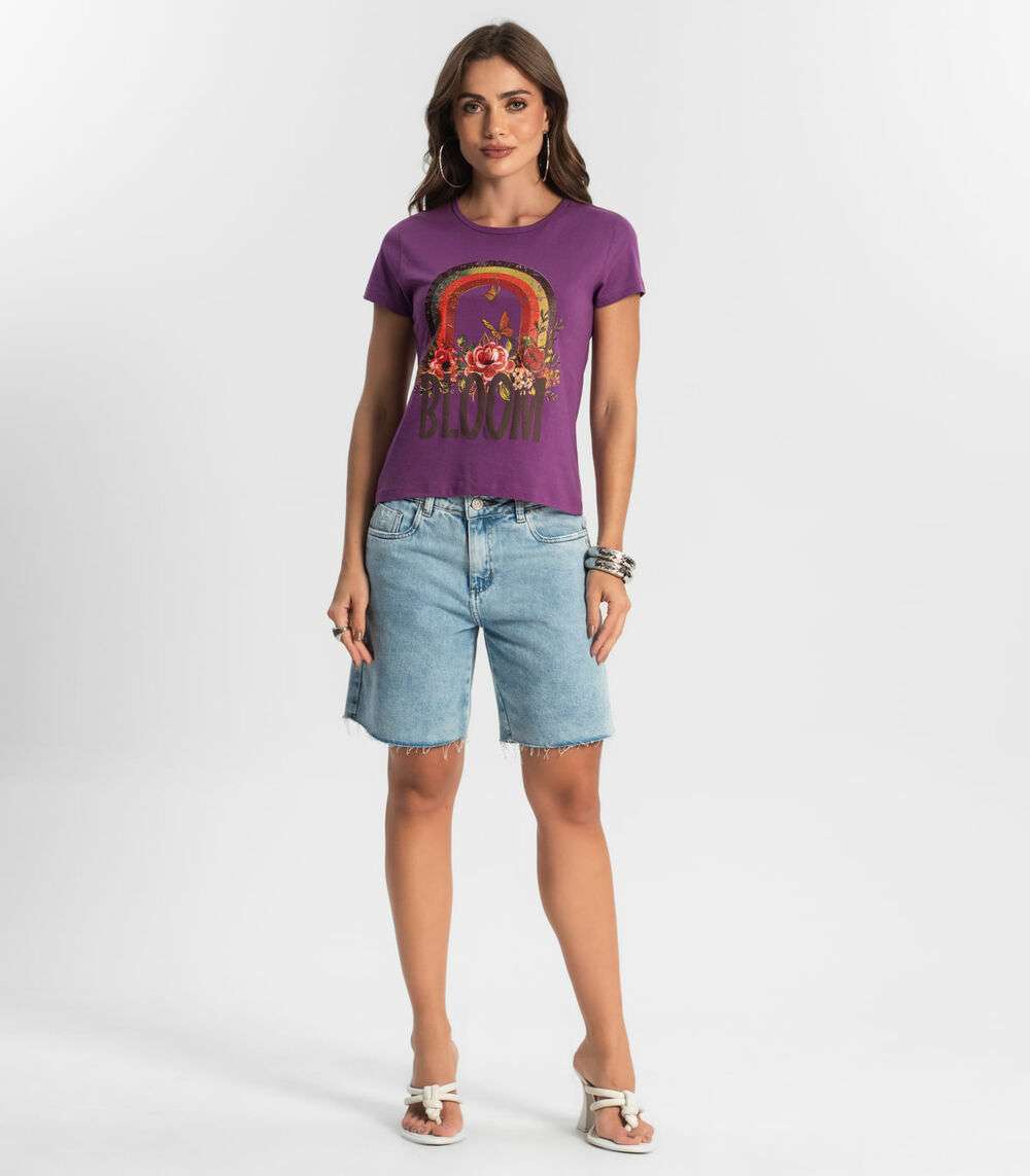 Blusa Baby Look Feminina Estampada Select Roxo