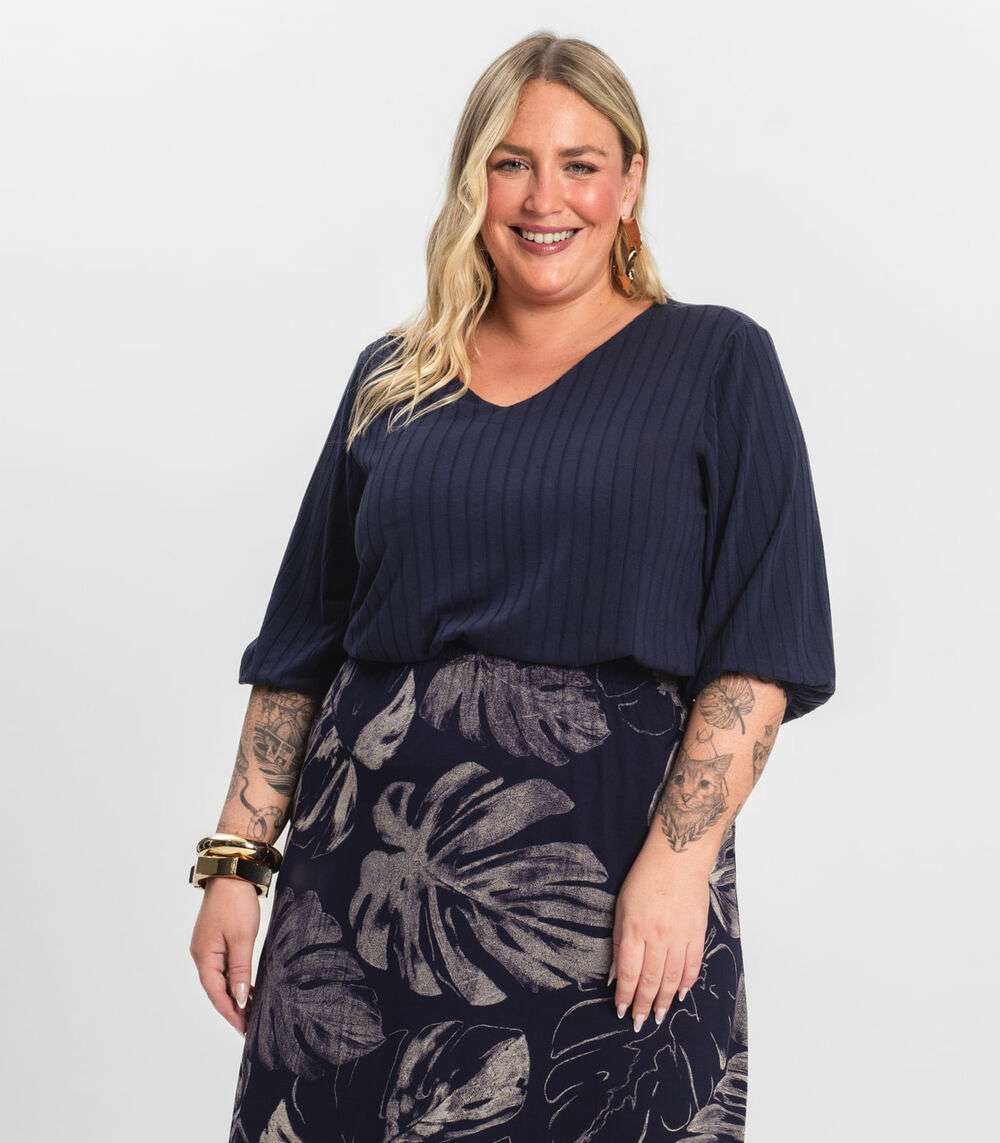 Blusa Canelada Plus Infinita Cor Azul