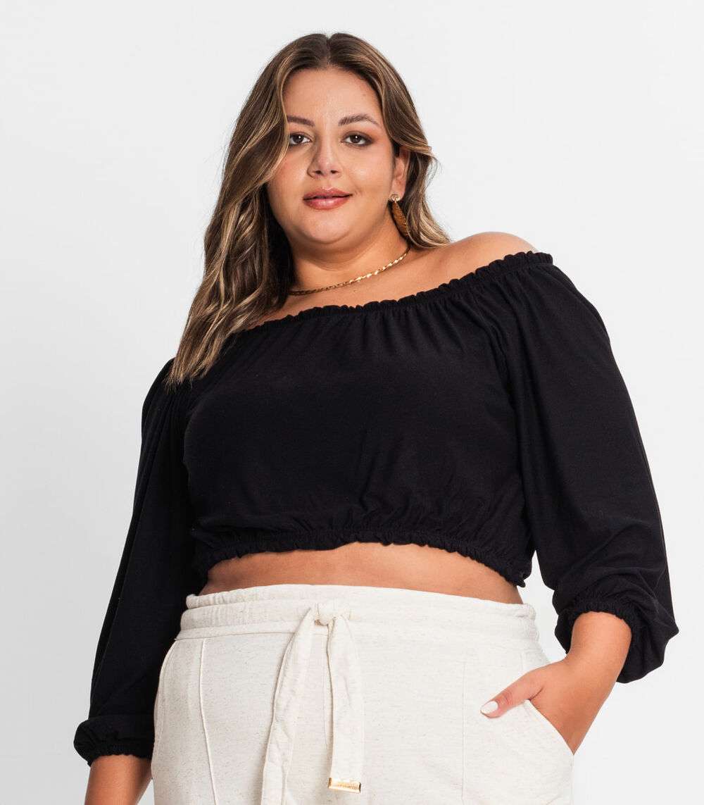 Blusa Ciganinha Feminina Plus Size Secret Glam Preto