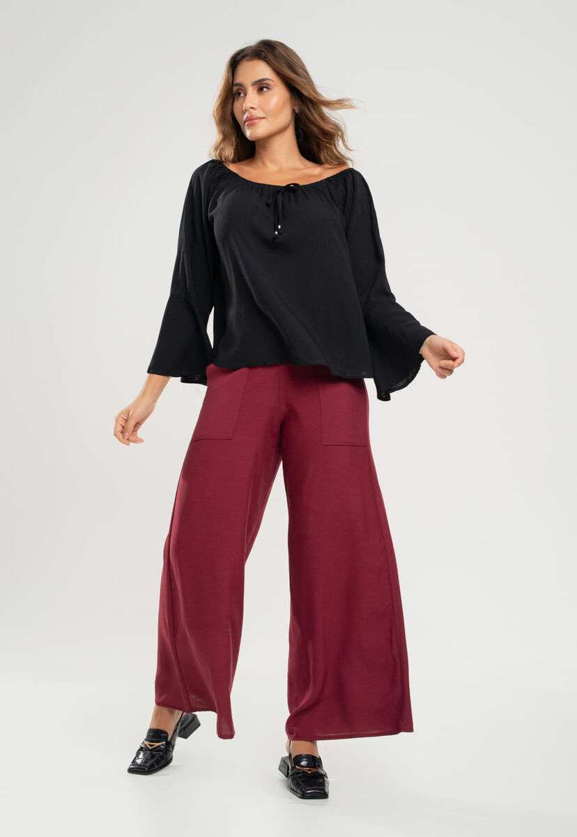 Esta blusa é a combinação perfeita entre elegância e conforto.Com um caimento impecável, ela se ajusta ao corpo de forma suave e sofisticada, proporcionando um toque de refinamento ao seu look.Confeccionada em viscose de alta qualidade, oferece uma sensação de leveza e frescor ao longo do dia, garantindo conforto em qualquer ocasião.O detalhe da gola ciganinha com cadarço e ponteiras confere um charme único, enquanto as mangas flare adicionam um toque de estilo atemporal.Seu shape amplo e versátil cria uma peça cheia de personalidade, ideal para compor diferentes looks.Confeccionado em tecido de alta qualidadeDecote VShape amploManga longa flareModelo ciganinha Medidas da modelo: Altura 1,70cm | Busto 88cm | Cintura 61cm | Quadril 92cm | Manequim 36Modelo veste PComposição: 100% Viscose