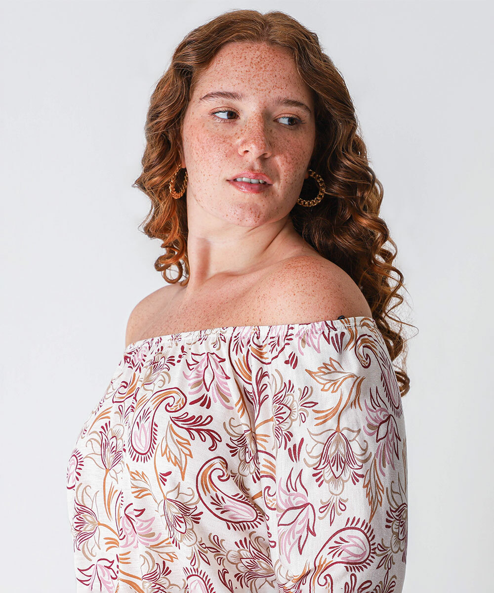 Blusa Ciganinha Plus Size Feminina Paisley Marisa Off White
