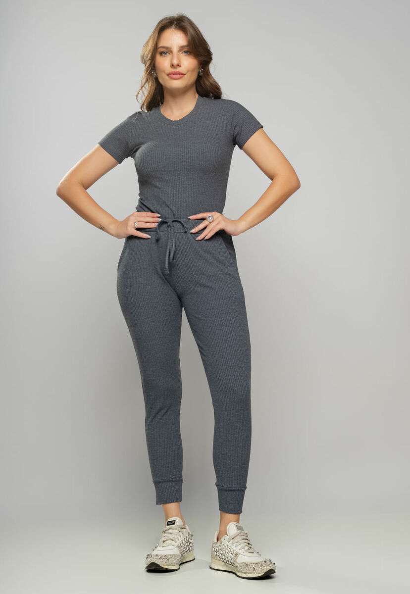 Blusa Comfy Básica Manga Curta Malha Canelada Grafite Salvatore Fashion
