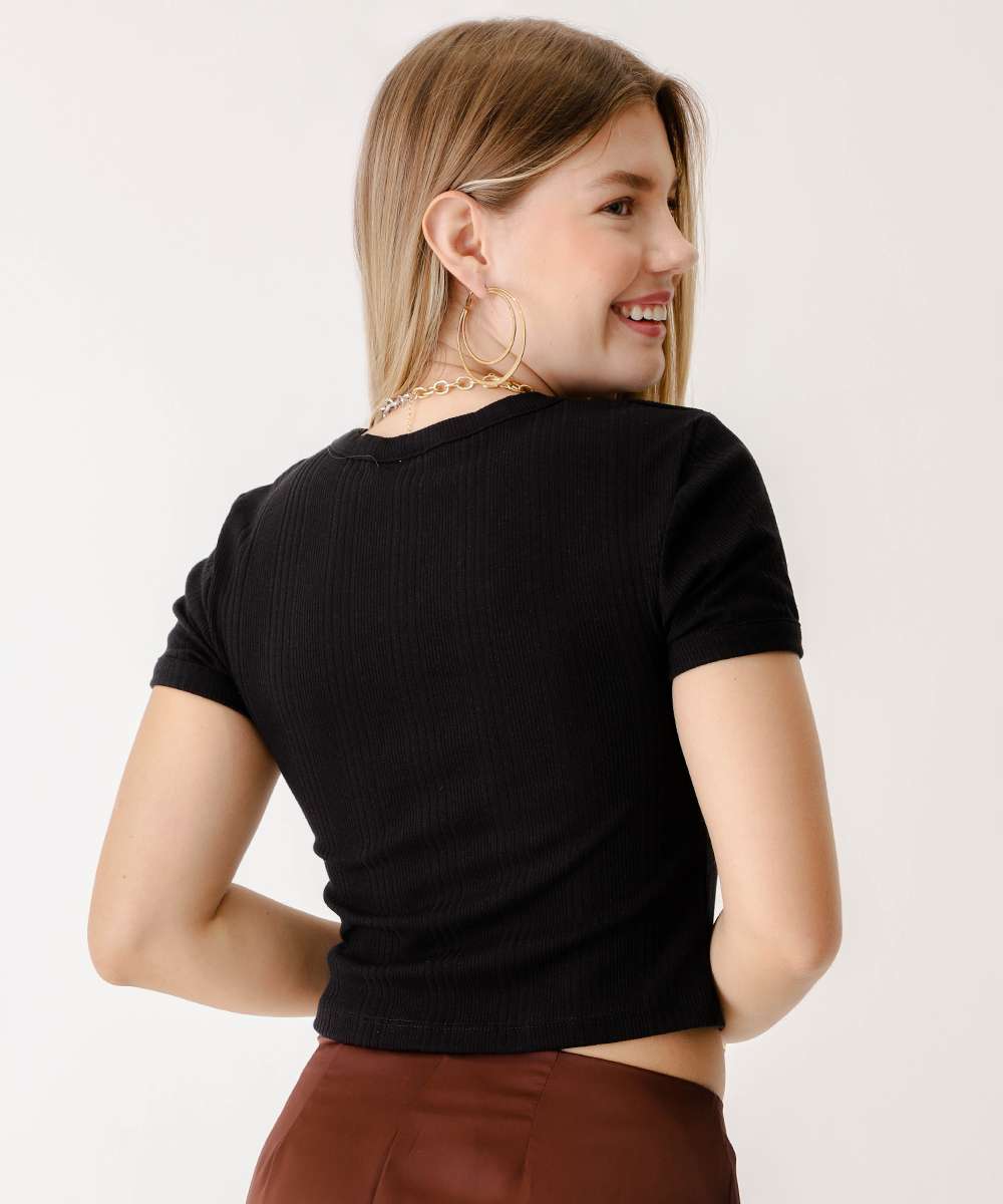Blusa Cropped Feminina Canelada Manga Curta Marisa
