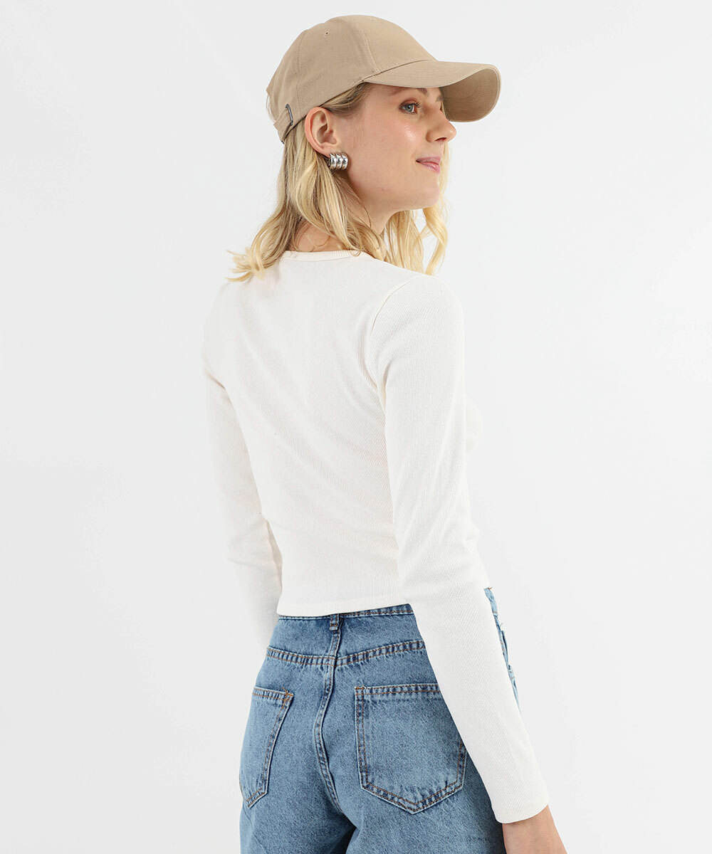 Blusa Cropped Feminina Canelada Manga Longa Marisa Branco