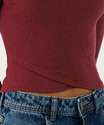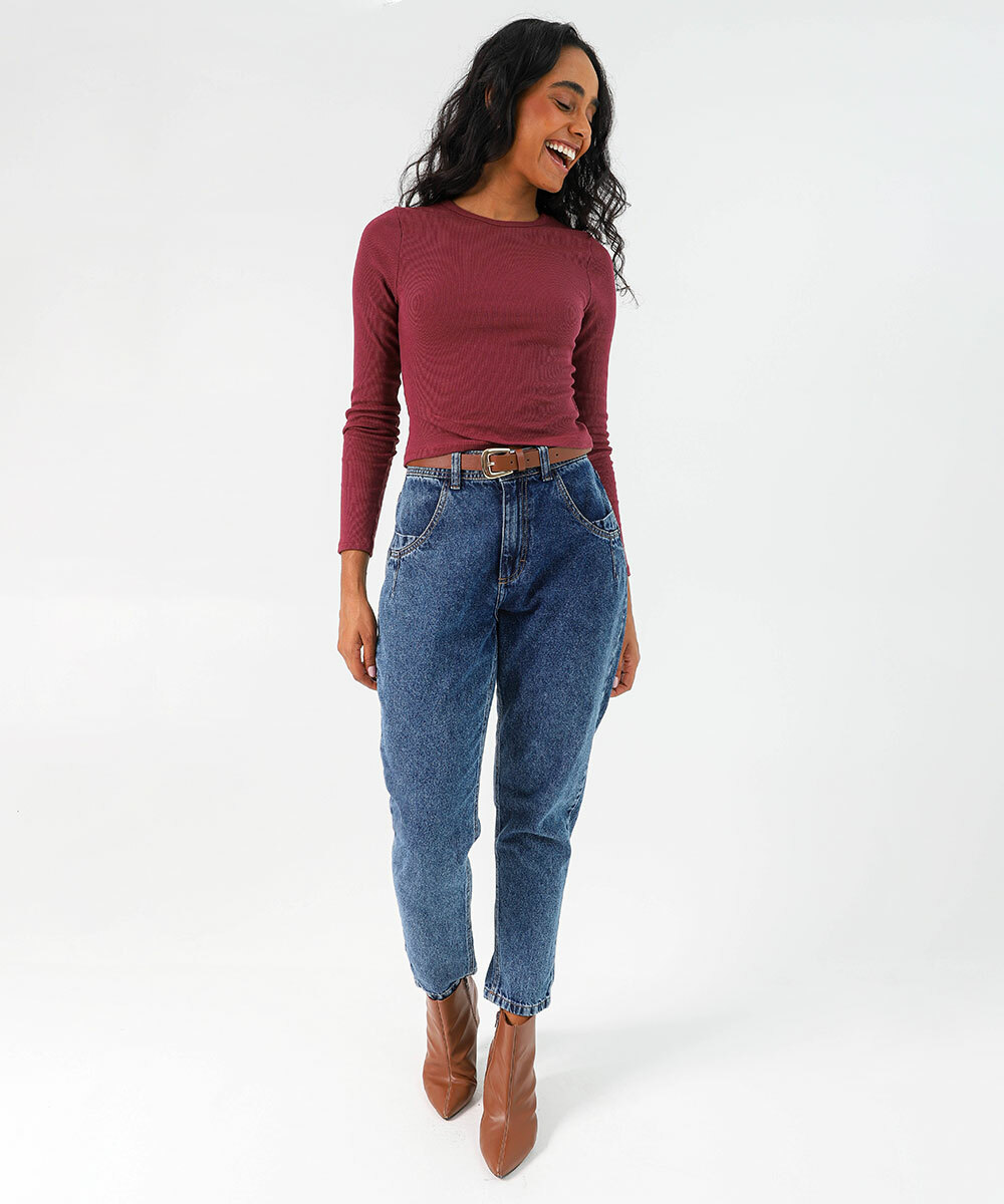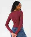 Blusa Cropped Feminina Canelada Manga Longa Marisa Vinho