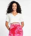 Blusa Cropped Feminina Decote V Rovitex Bege