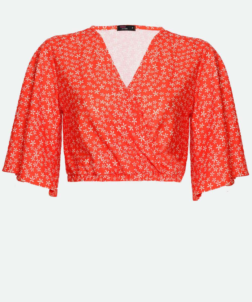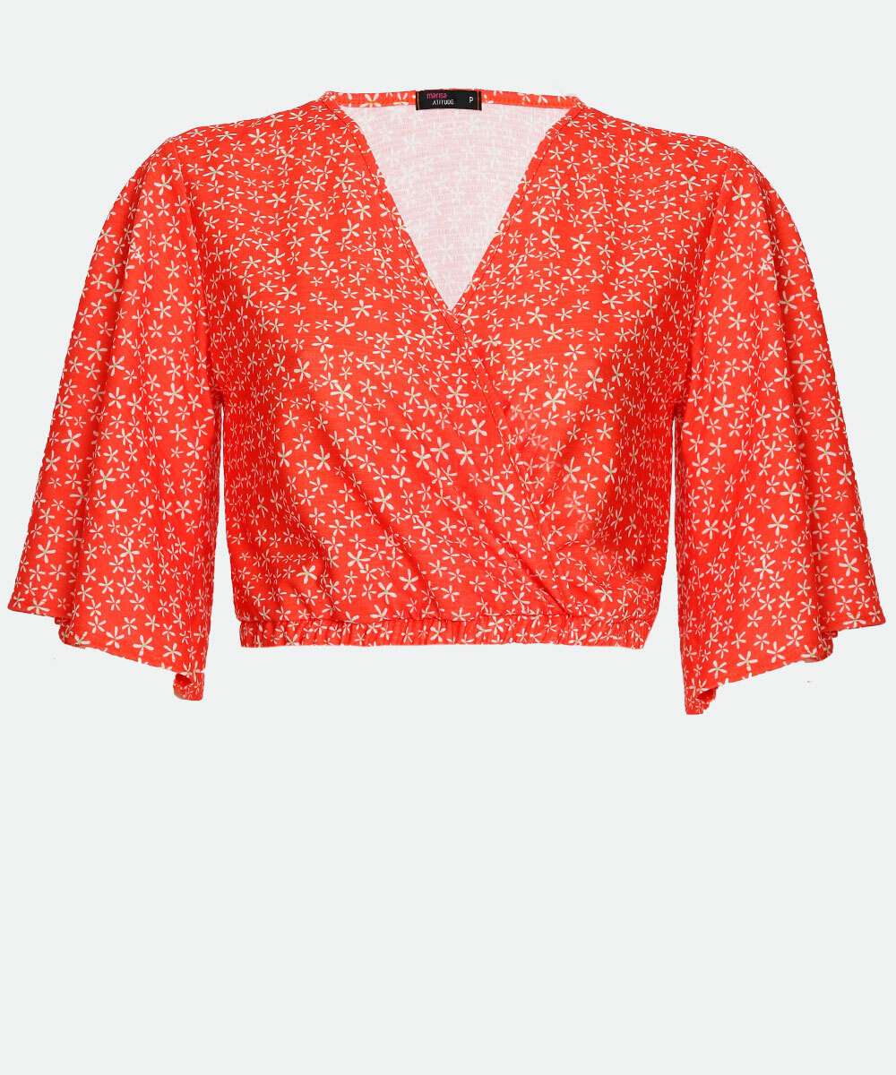 Detalhes adicionais: cropped, transpassado, manga curta, moda jovem