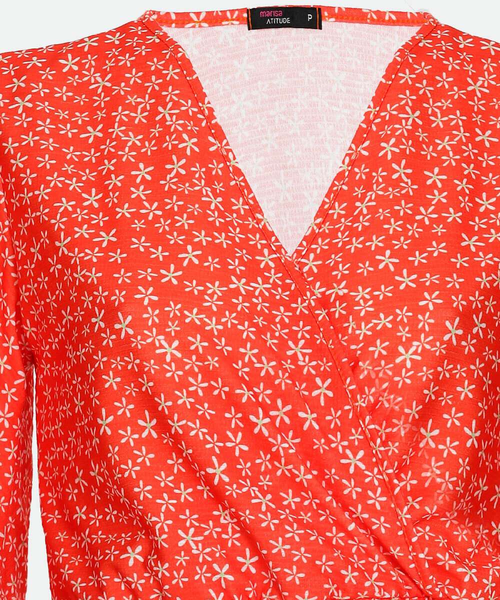 Modelo: Blusa Cropped Feminina Estampa Flores Transpassada Marisa