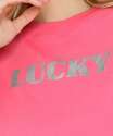 Blusa feminina, modelo cropped, confeccionada em malha algodão. Possui decote redondo, estampa frase foil, manga curta, acabamento e costura no tom.
