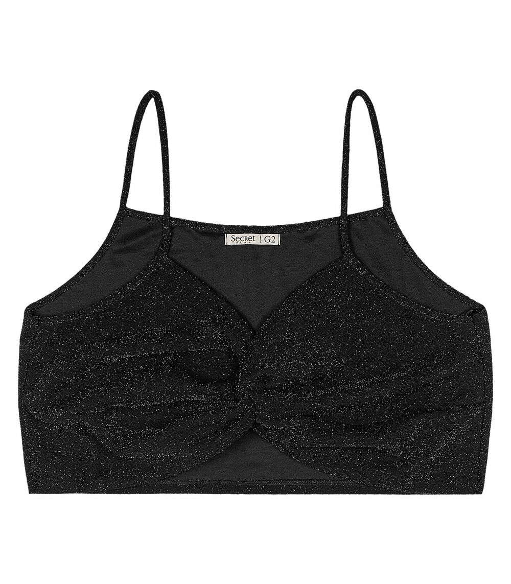 Blusa Cropped Feminina Plus Size Secret Glam Preto