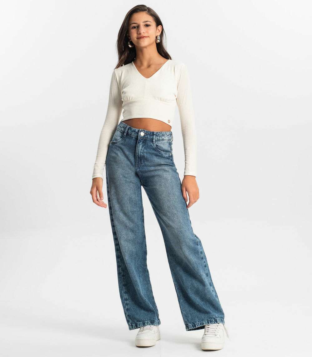 Blusa Cropped Juvenil Manga Longa Minty Bege