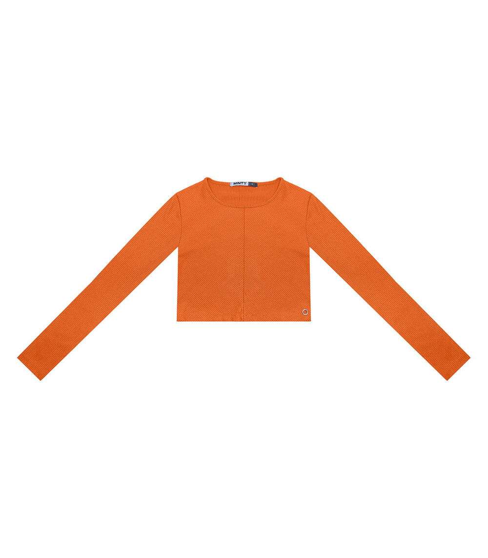 Blusa Cropped Juvenil Manga Longa Minty Laranja