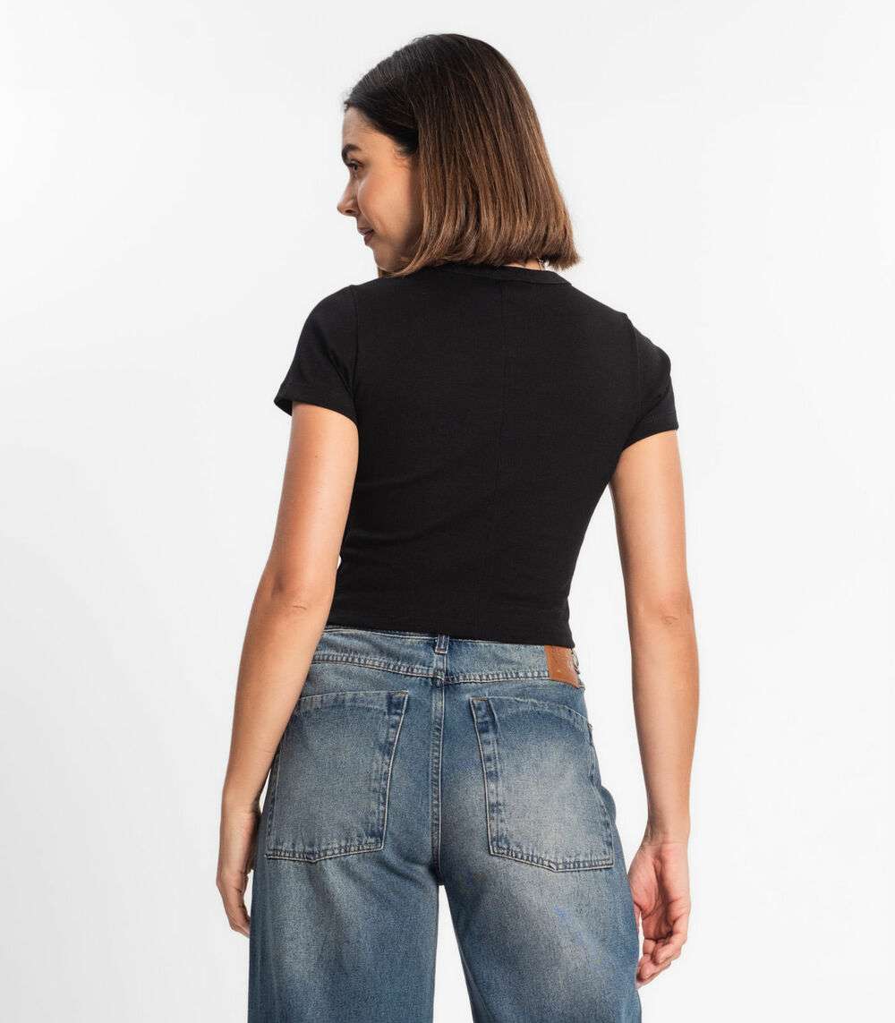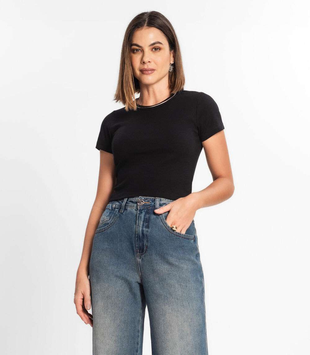 Blusa Cropped Ribana Básica Rovitex Branco