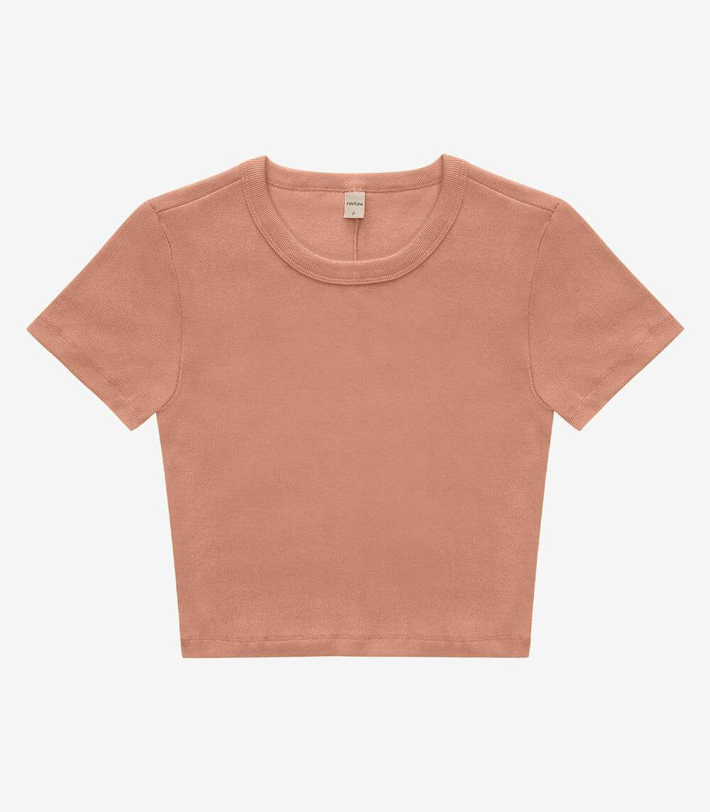 Blusa Cropped Ribana Básica Rovitex Marrom